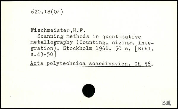 Scanning methods in quantitative metallography (Counting, sizing, integration).