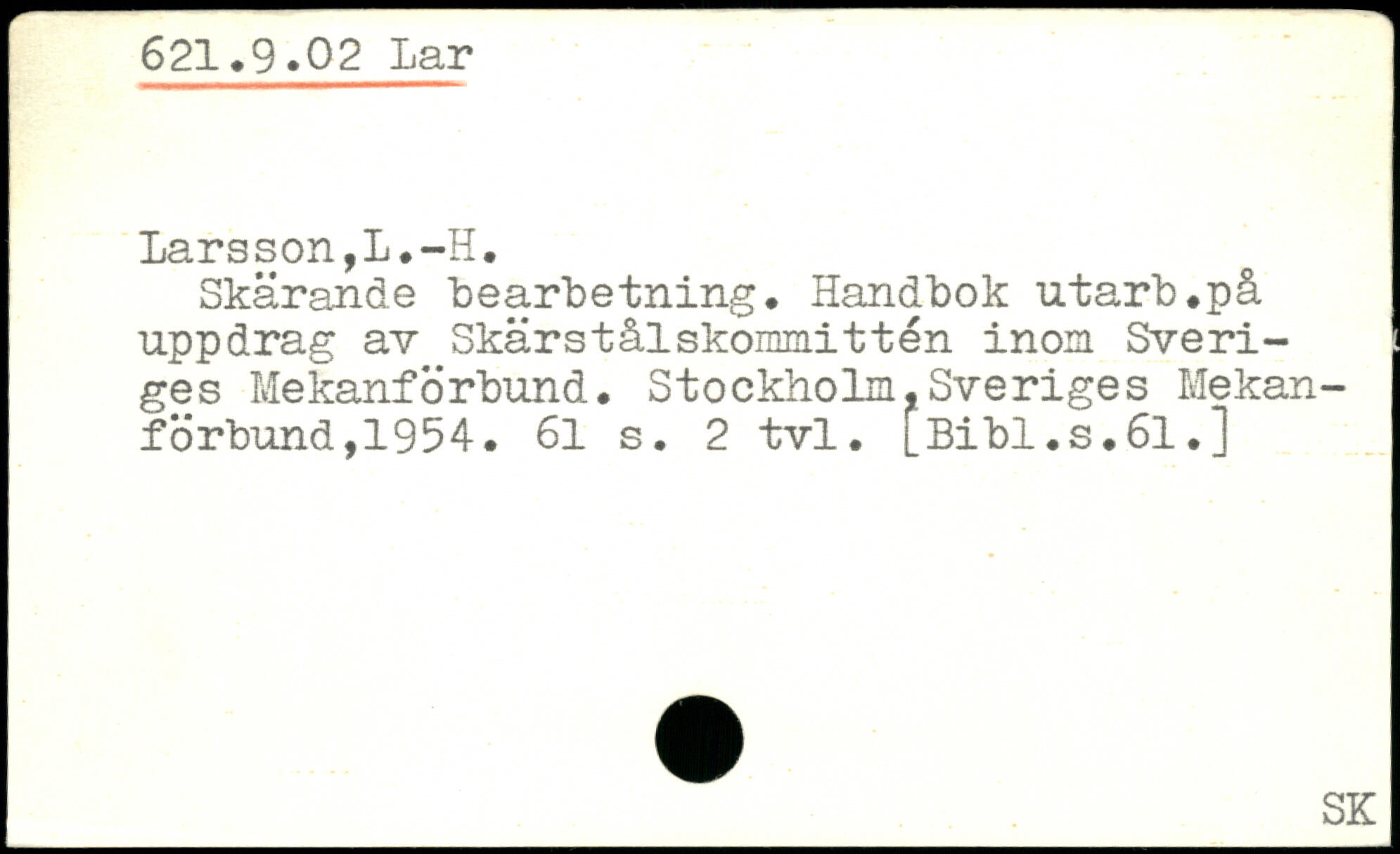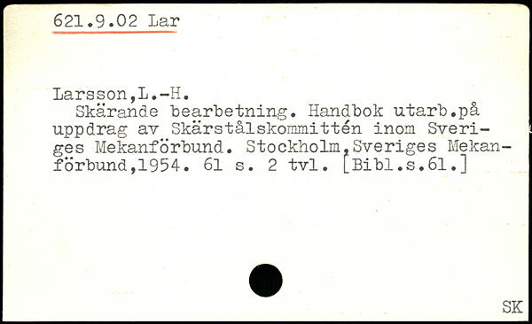 Skärande "bearbetning. Handbok utarb.på uppdrag av Skärstålskommittén inom Sveriges Mekanforbund.