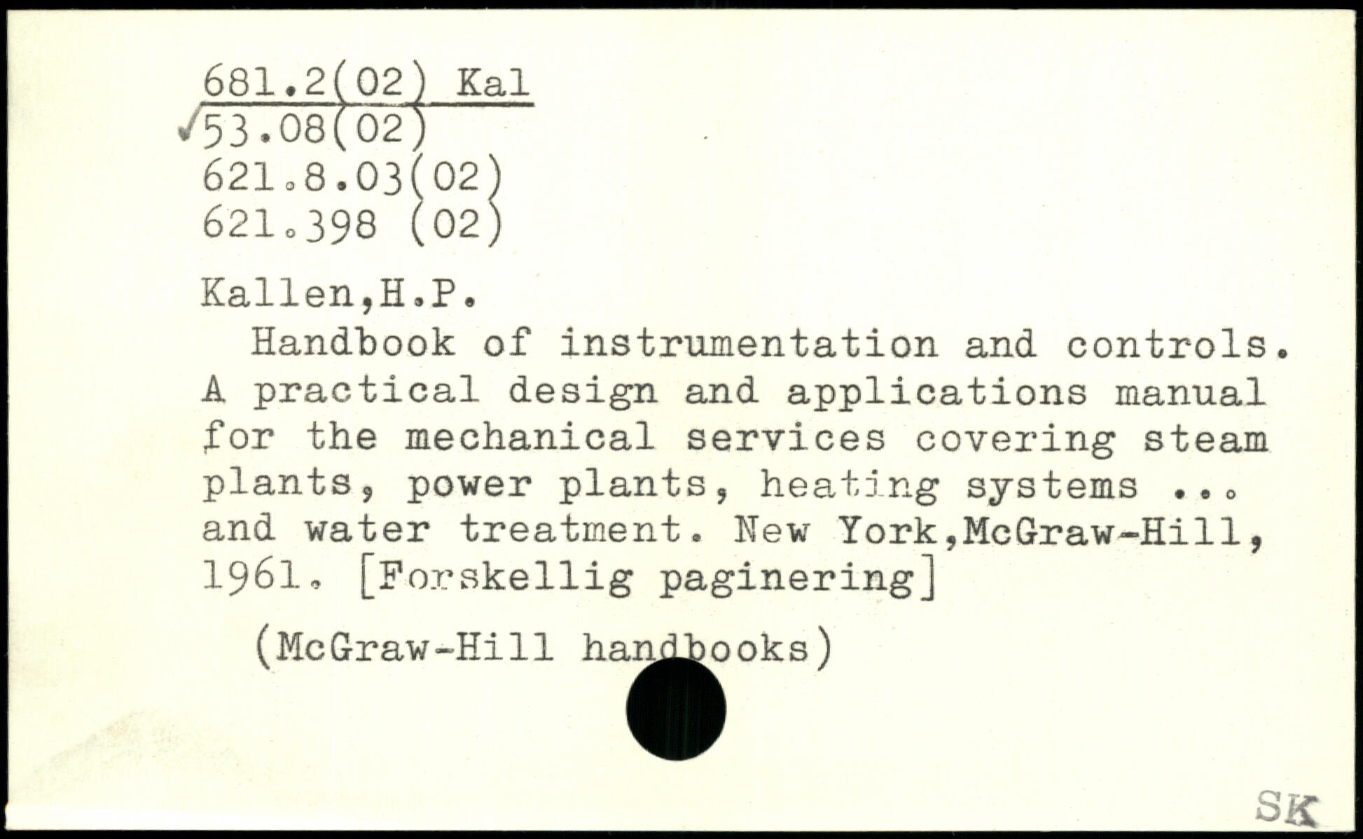 Handbook of instrumentation and controls. A practical design and applications manual for the mechanical services covering steam plantsj power plants, heating systems ,.0 and water treatment.