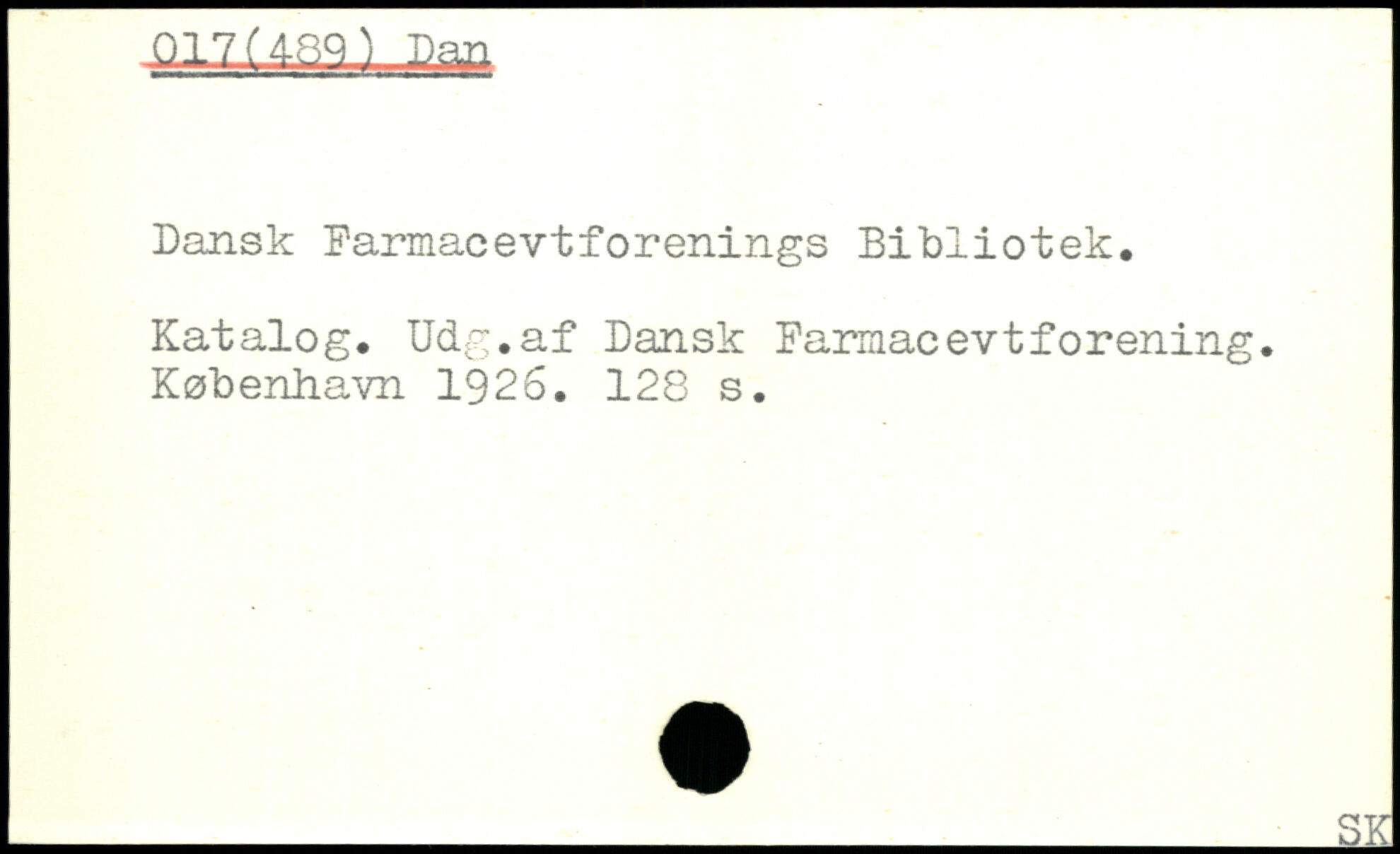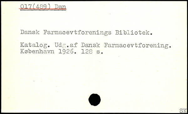 Dansk Farmacevtforenings Bibliotek. Katalog. Udg.af Dansk Farmacevtforening.