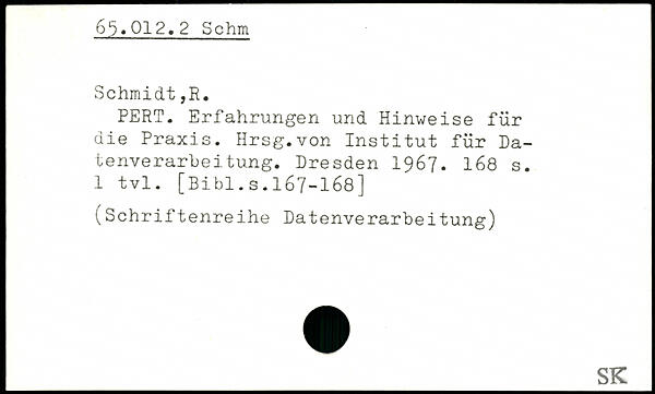 PERT. Erfahrungen und Hinweise für die Praxis. Hrsg.von Institut für Datenverarbeitung. Dresden 1967.