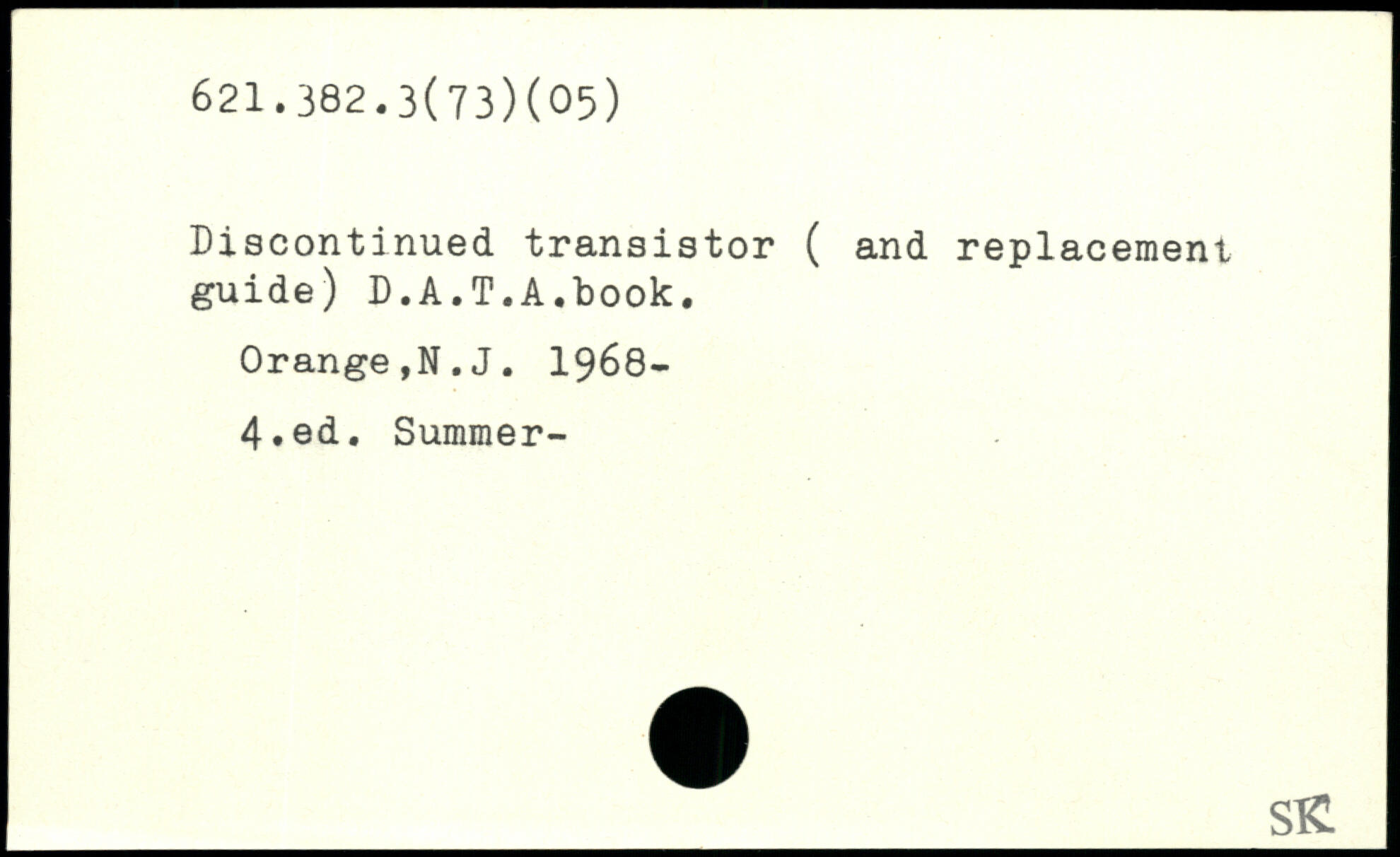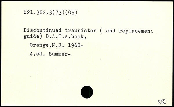 Discontinued transistor ( and replacement guide) D.A.T.A.book. Orange,N.J. 1968-