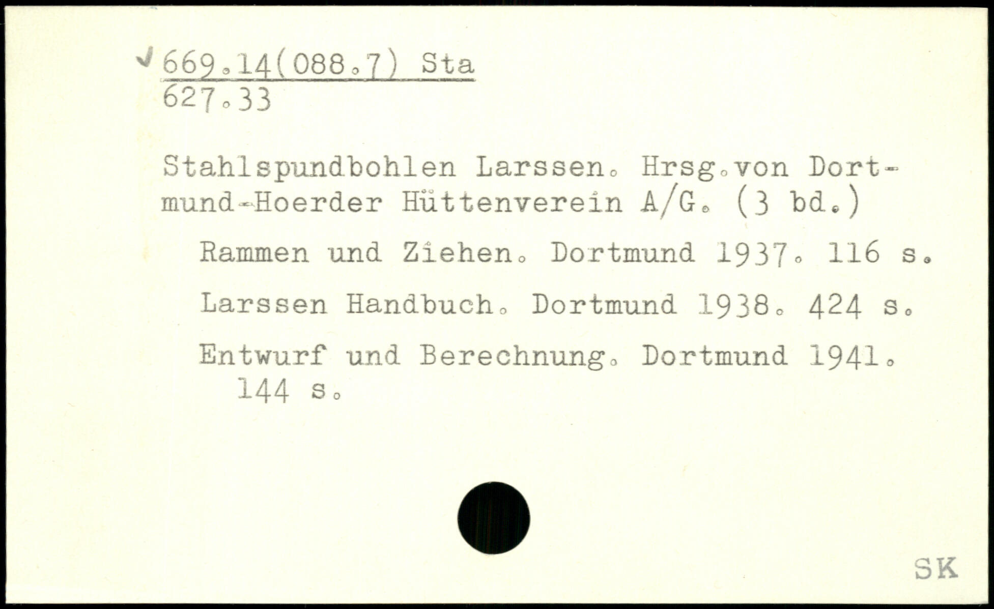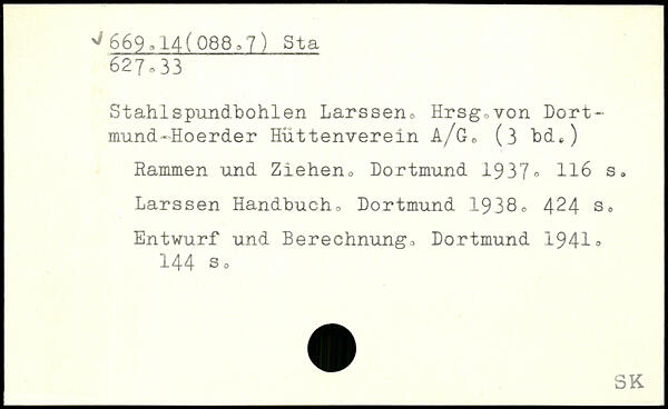 Stahlspundbohlen Larssen, Hrsg0von Dortmund -Hoerder Hüttenverein a/G6 (3 bde) Rammen und Ziehen, Dortmund 1937.