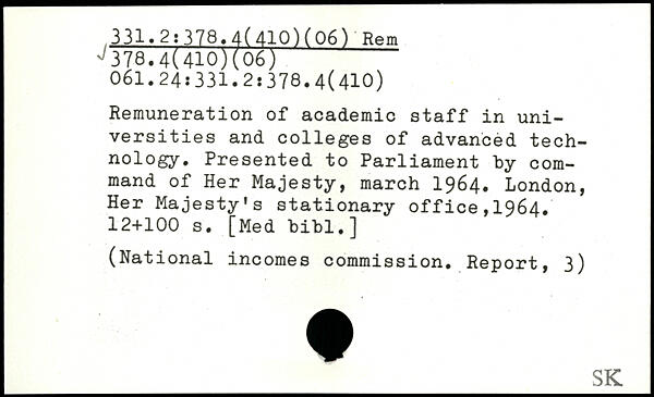 Remuneration of academic staff in universities and colleges of advanced technology. Presented to Parliament by command of Her Majesty, march 1964. London, Her Majesty's stationary office,1964.