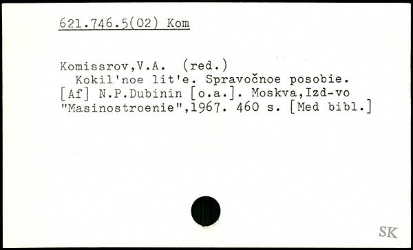 Kokil'noe life. Spravocnoe posobie. [Af] N.P.Dubinin [o.a.]. Moskva,Izd-vo "Masinostroenie",1967. 4&
