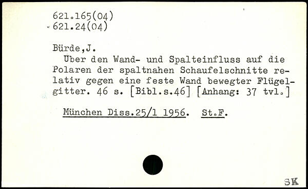 Uber den Wand- und Spalteinfluss auf die Polaren der spaltnahen Schaufelschnitte relativ gegen eine feste Wand bewegter Flügelgitter.