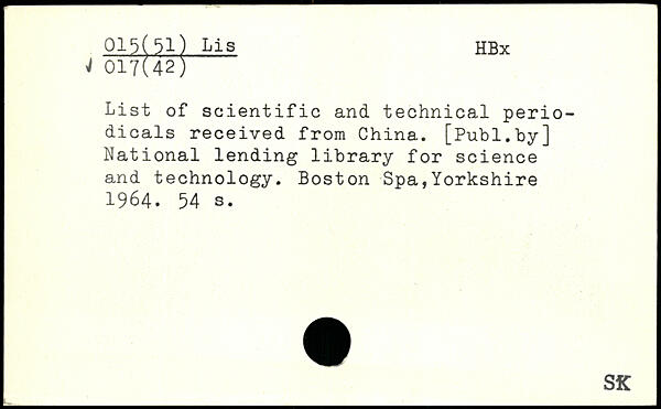 List of scientific and technical periodicals received from China.