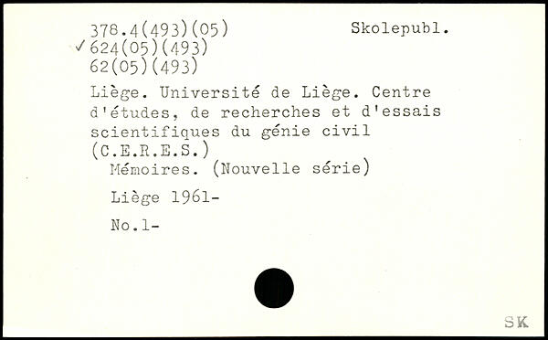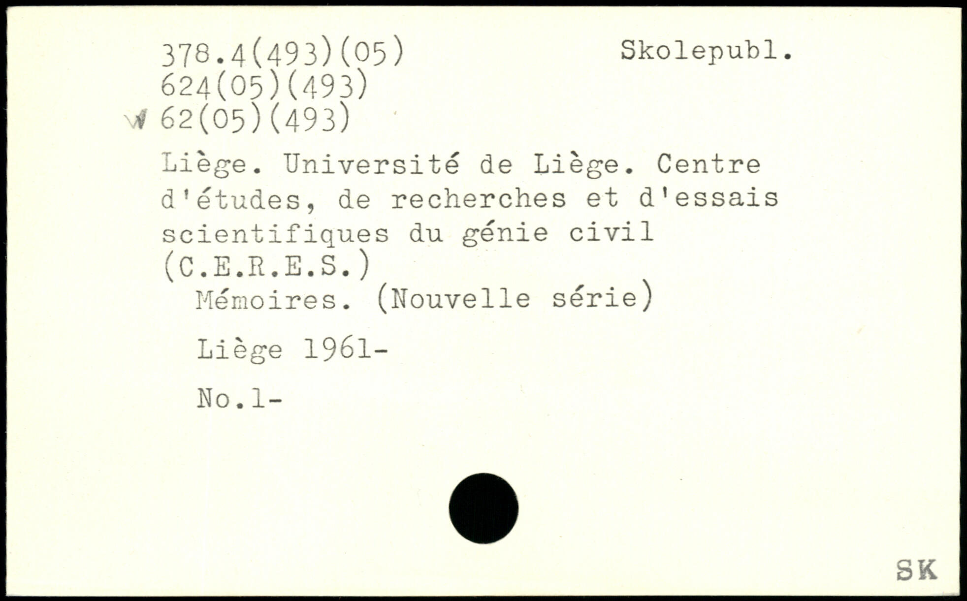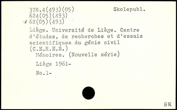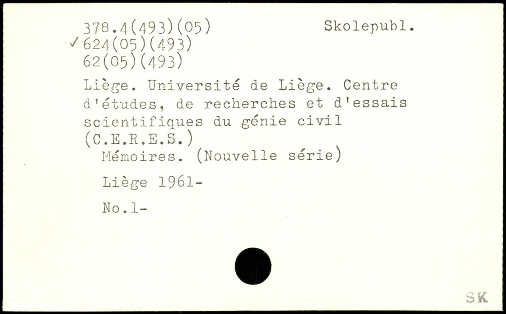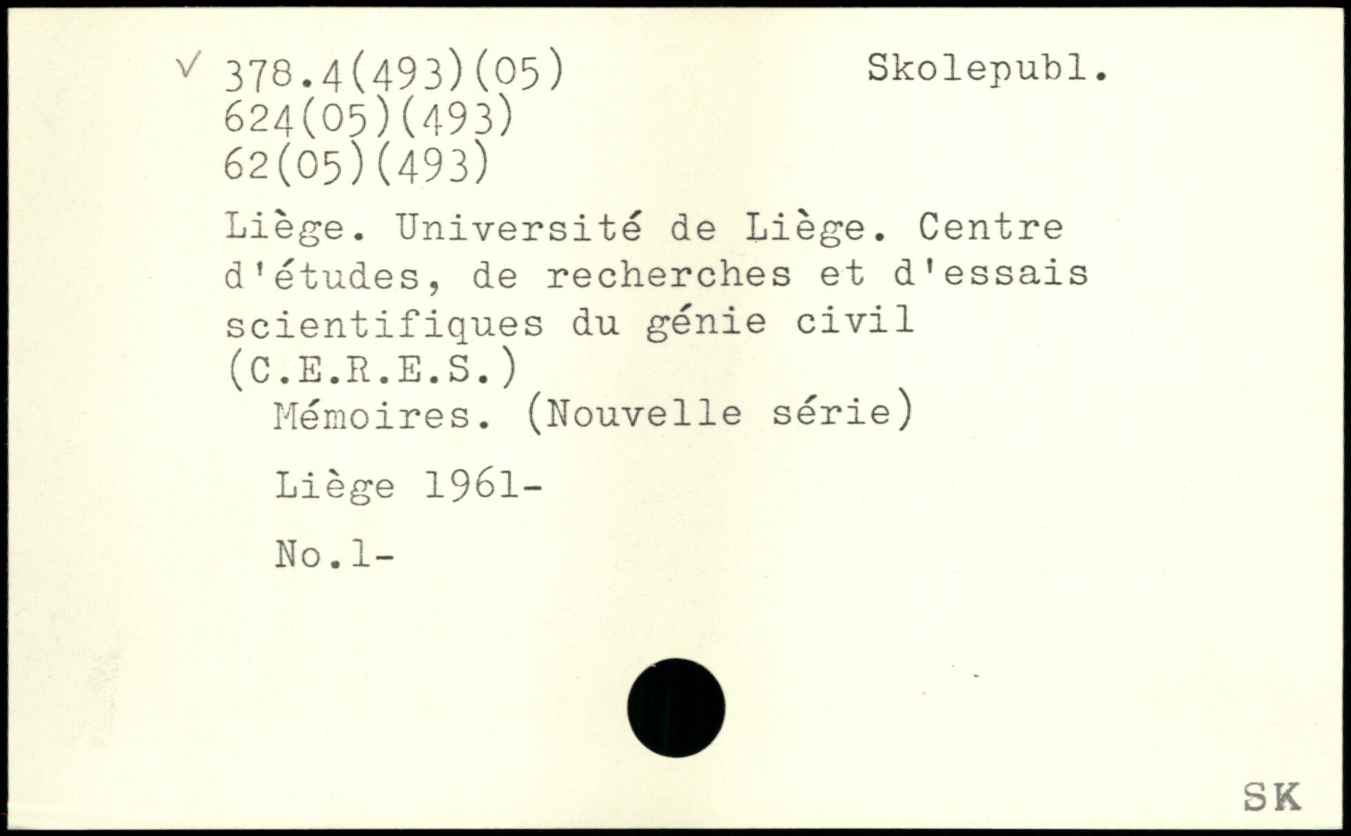 Liège. Université de Liège. Centre d’études, de recherches et d'essais scientifiques du génie civil (C.E.R.E.S.) Mémoires. (Nouvelle série) Liège 1961-No.l-