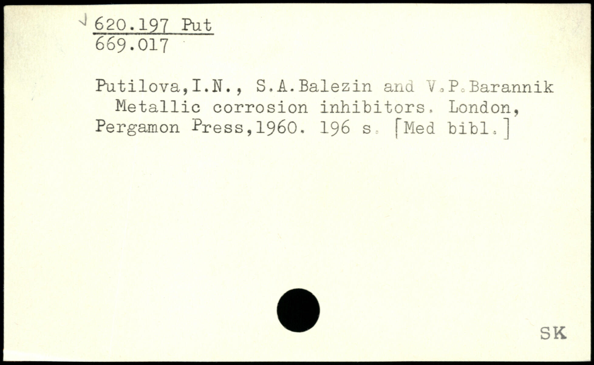 Putilova,I.N., S.A.Balezin and Y.PeBarannik Metallic corrosion inhibitors.