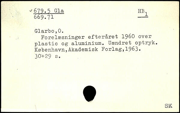 Forelæsninger efteråret 1960 over plastic og aluminium. Uændret optryk.