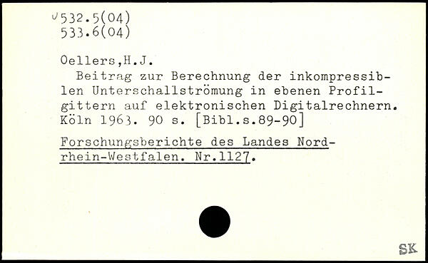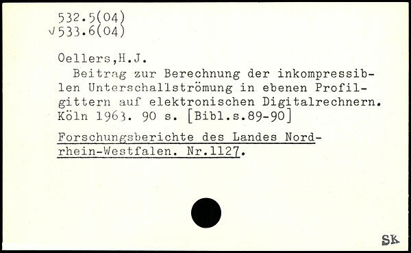 Beitrag zur Berechnung der inkompressib-len Unterschallströmung in ebenen Profilgittern auf elektronischen Digitalrechnern.