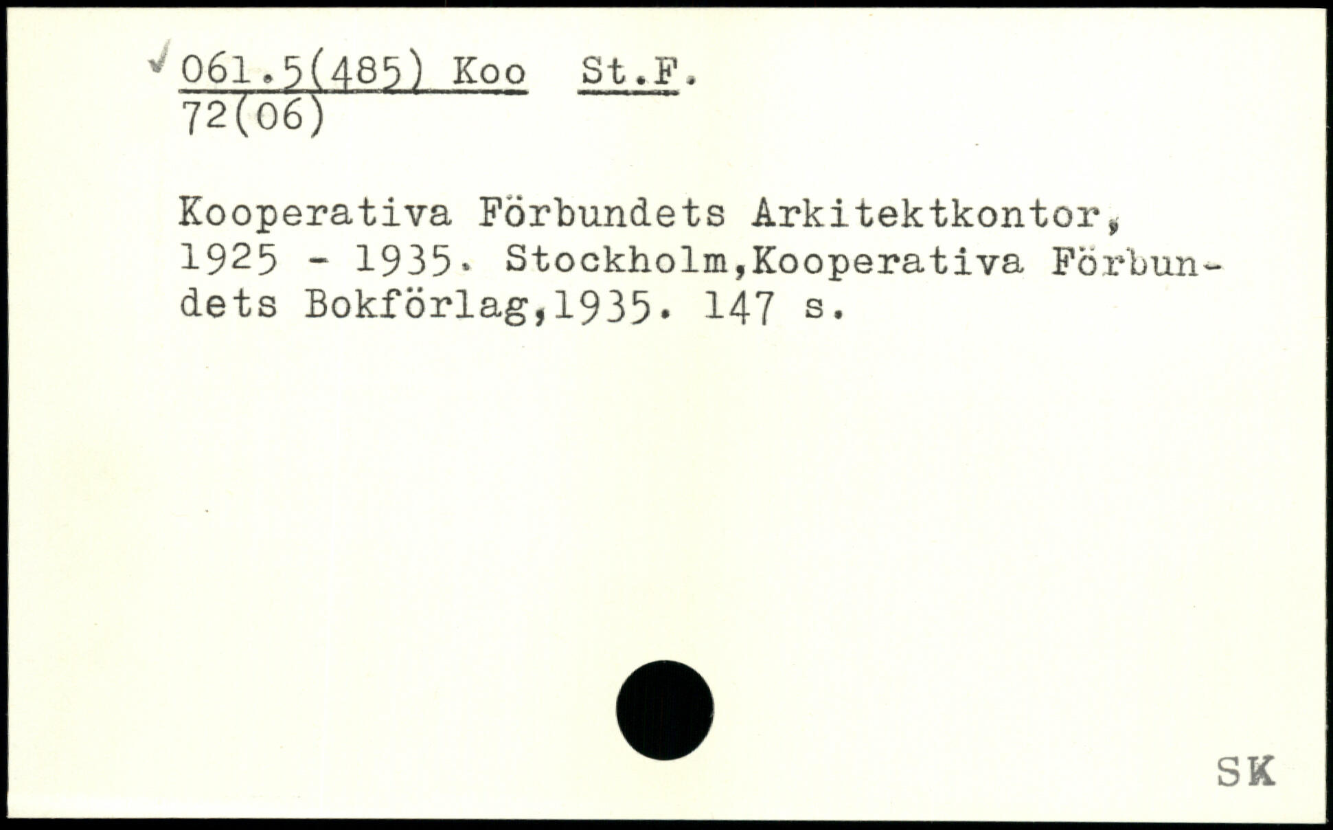 Kooperativa Förbundets Arkitektkontor, 1925 - 1935.