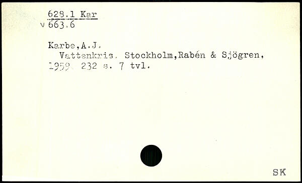 Vattenkris, Stockholm,Rabén & Sjögren, 1959, 232 s. 7 tv1.