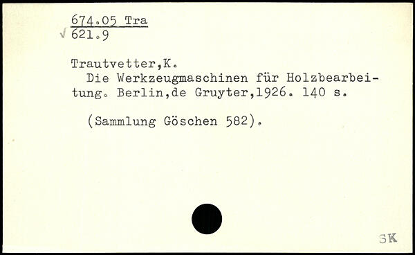 Die Werkzeugmaschinen für Holzbearbeitung, Berlin,de Gruyter,1926.