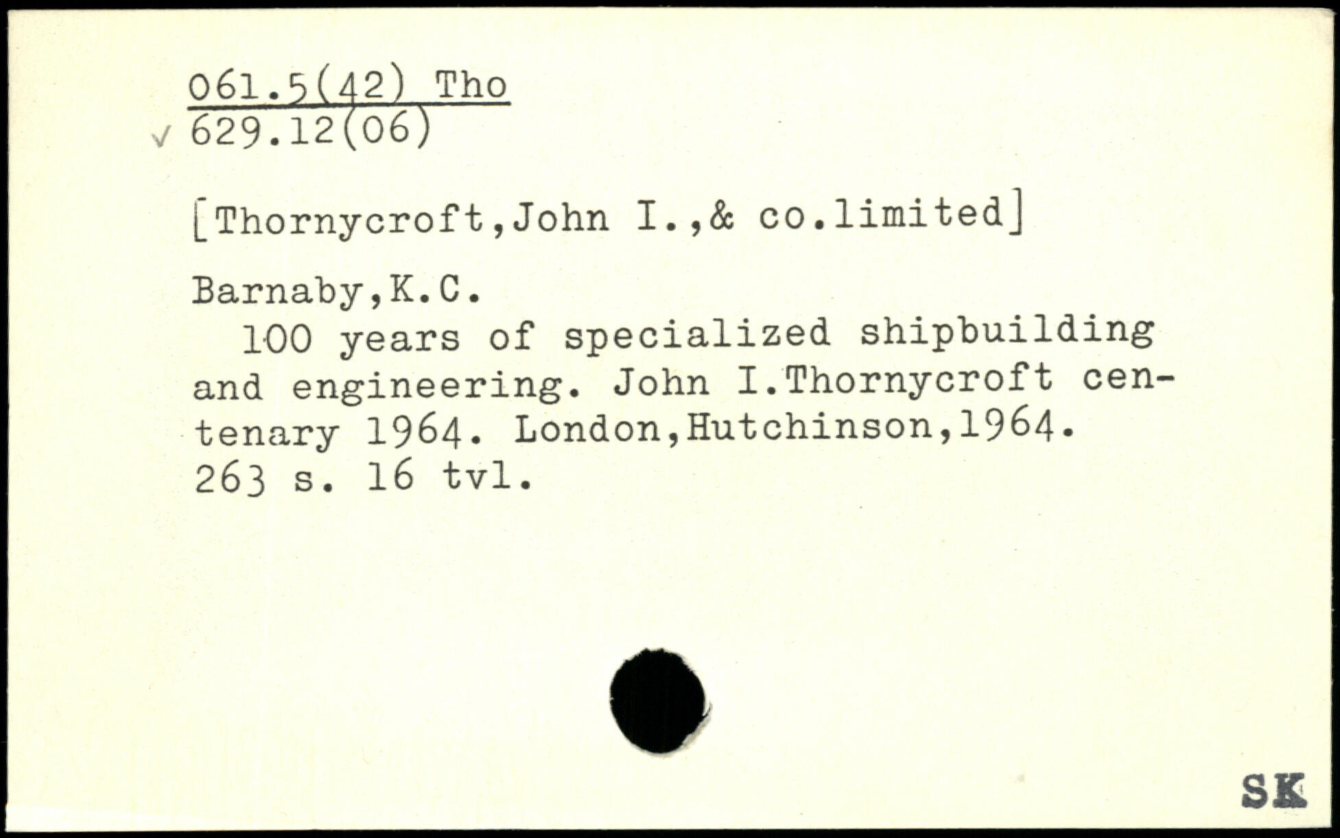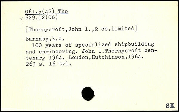 j_ Thornycrof t, John I.,& co. limited] Barnaby,K.C. 100 years of specialized shipbuilding and engineering. John I.Thornycroft centenary 1964.