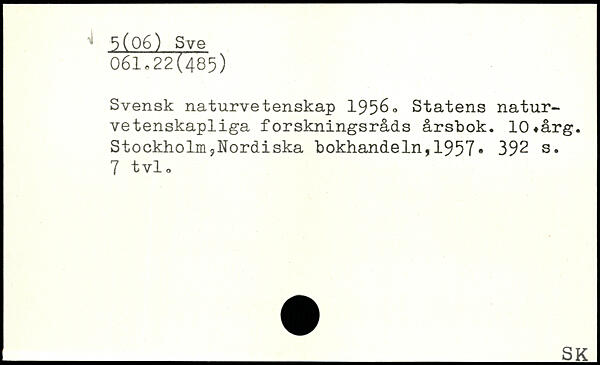 Svensk naturvetenskap 1956, Statens naturvetenskapliga forskningsråds årsbok. 10.årg. Stockholm?Nordiska bokhandeln,1957.