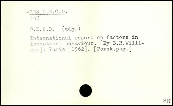 International report on factors in investment behaviour. [By B.R.W1111ams j.