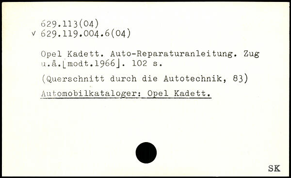 Opel Kadett. Auto-Reparaturanleitung. Zug u. ä. [_ modt. 1966 J.