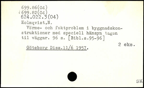 Värme- och fuktproblem i byggnadskon-struktioner med speciell hänsyn tagen til väggar.