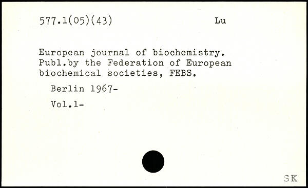 European journal of biochemistry.