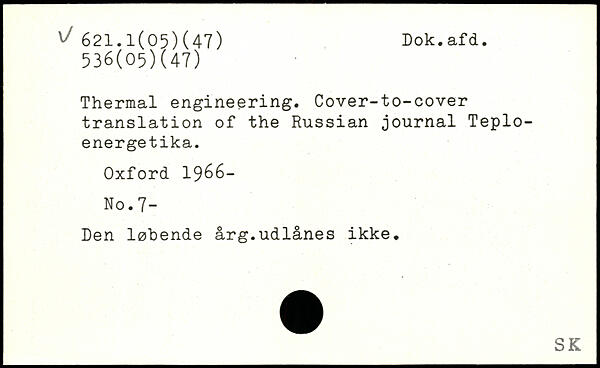 Thermal engineering. Cover-to-cover translation of the Russian journal Teplo-energetika.