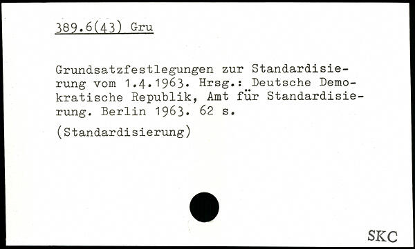 Grundsatzfestlegungen zur Standardisierung vom 1.4.1963, Hrsg.: Deutsche Demokratische Republik, Amt für Standardisierung.