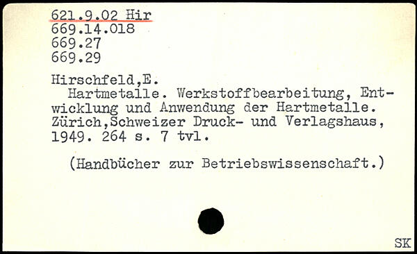 Hartmetalle. Werkstoffbearbeitung, Entwicklung und Anwendung der Hartmetalle.