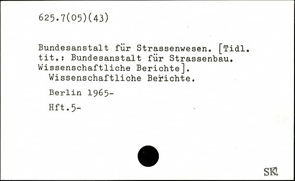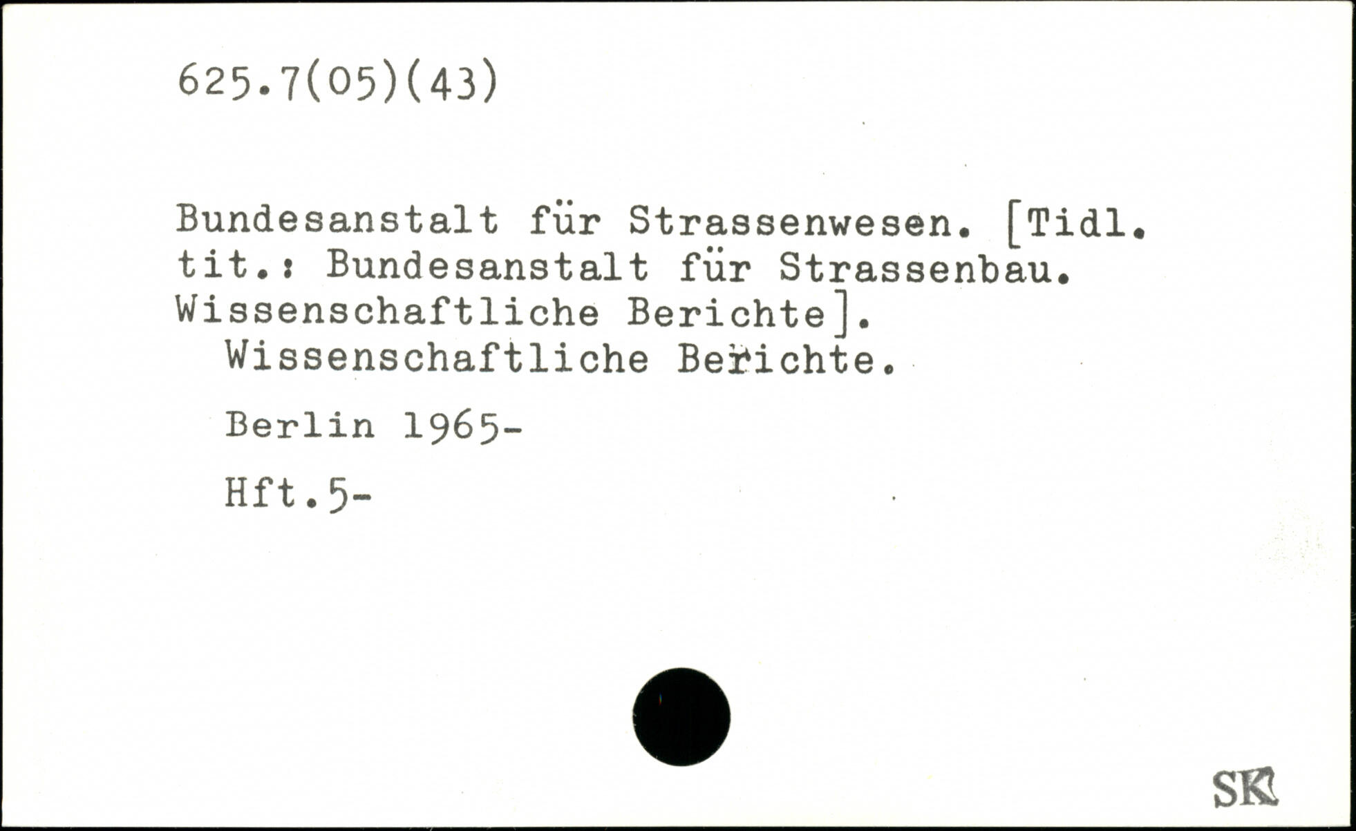 Bundesanstalt für Strassenwesen. [Tidl. tit.i Bundesanstalt für Strassenbau. Wissenschaftliche Berichte]. Wissenschaftliche Berichte.
