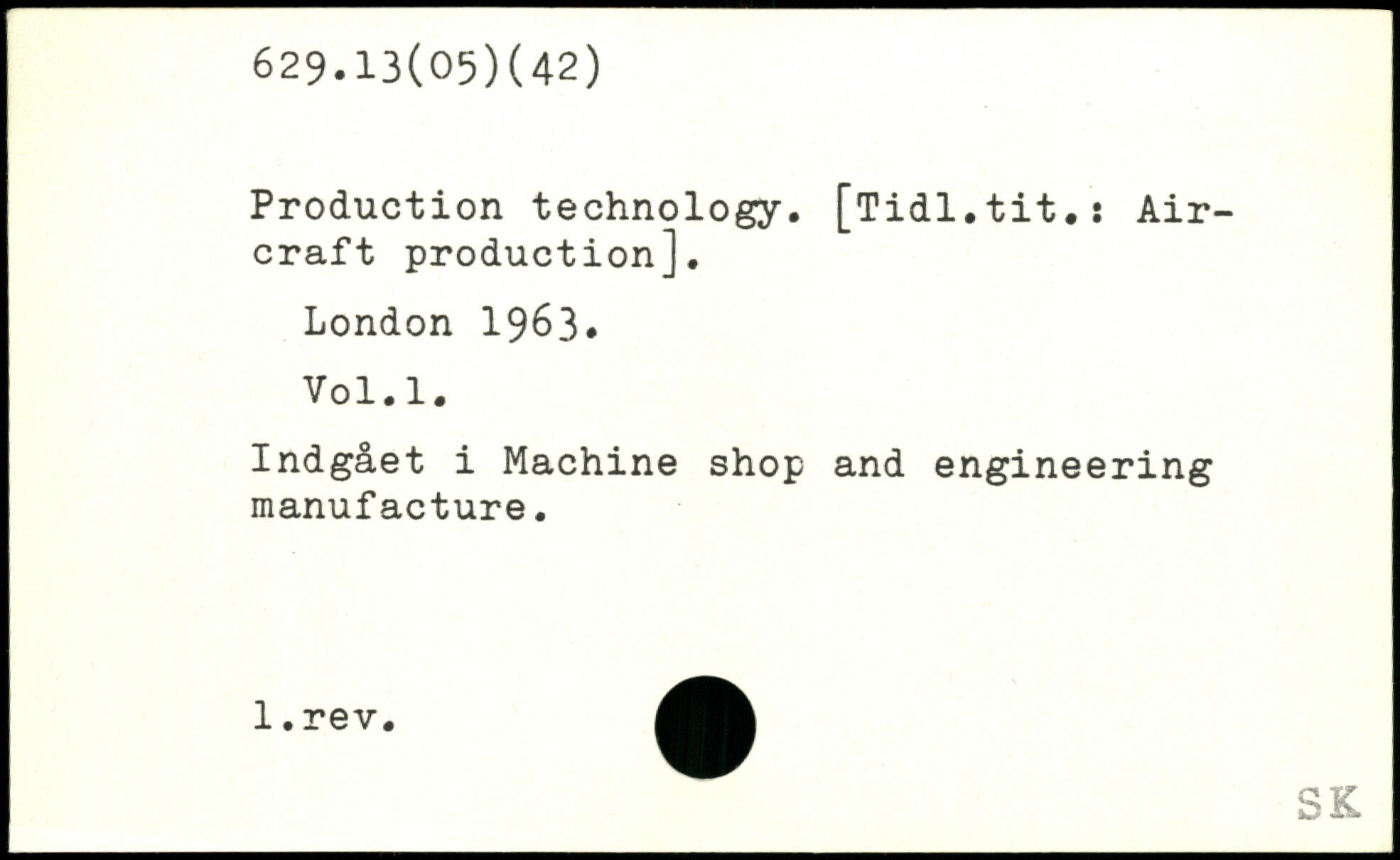 Production technology. [Tidl.tit.î Aircraft production]