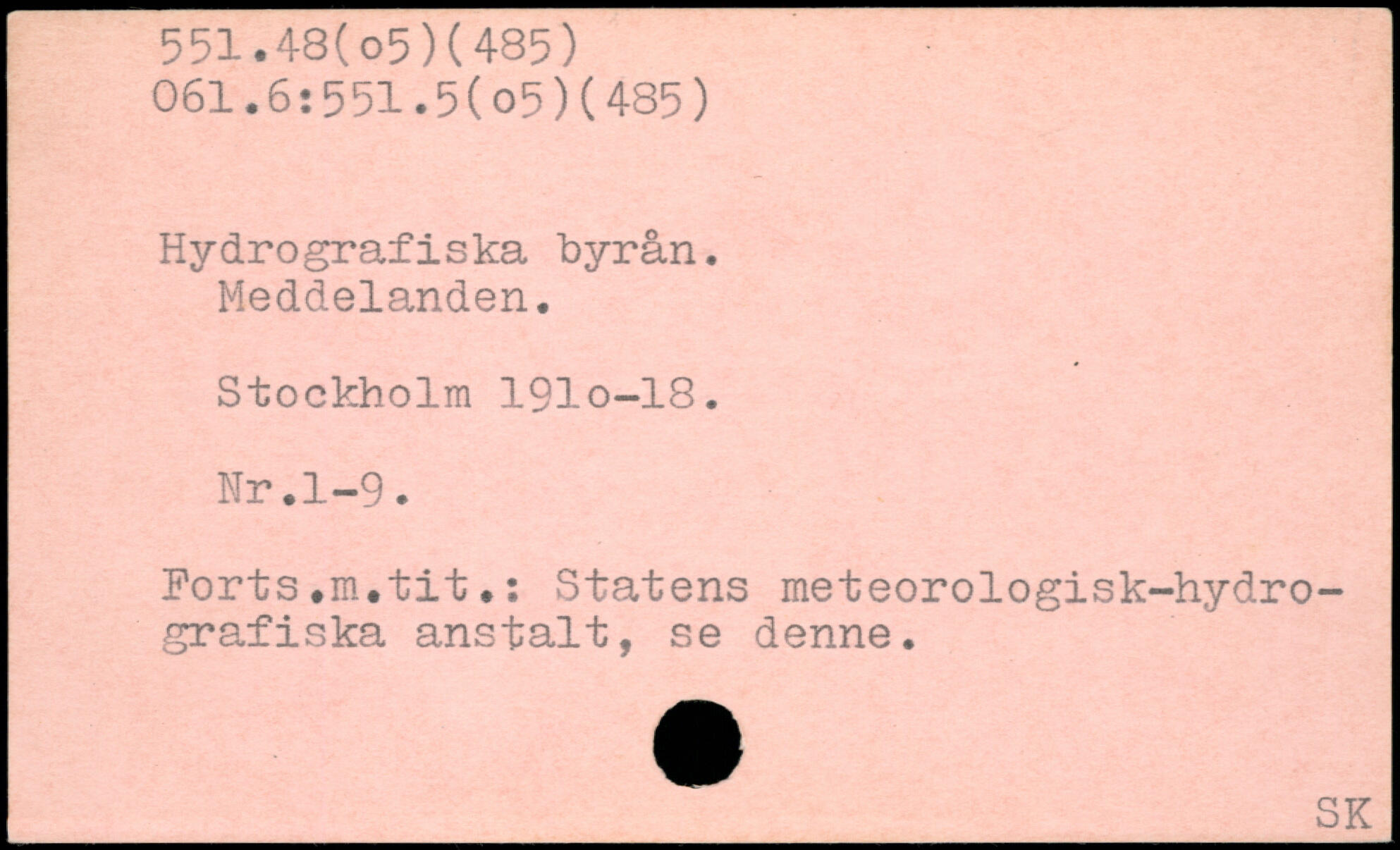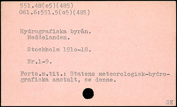 Hydrografiska byrån. Meddelanden. Stockholm 191o-18. Nr.1-9. Forts.m.tit.: Statens meteorologisk-hydro-grafiska anstalt, se denne.