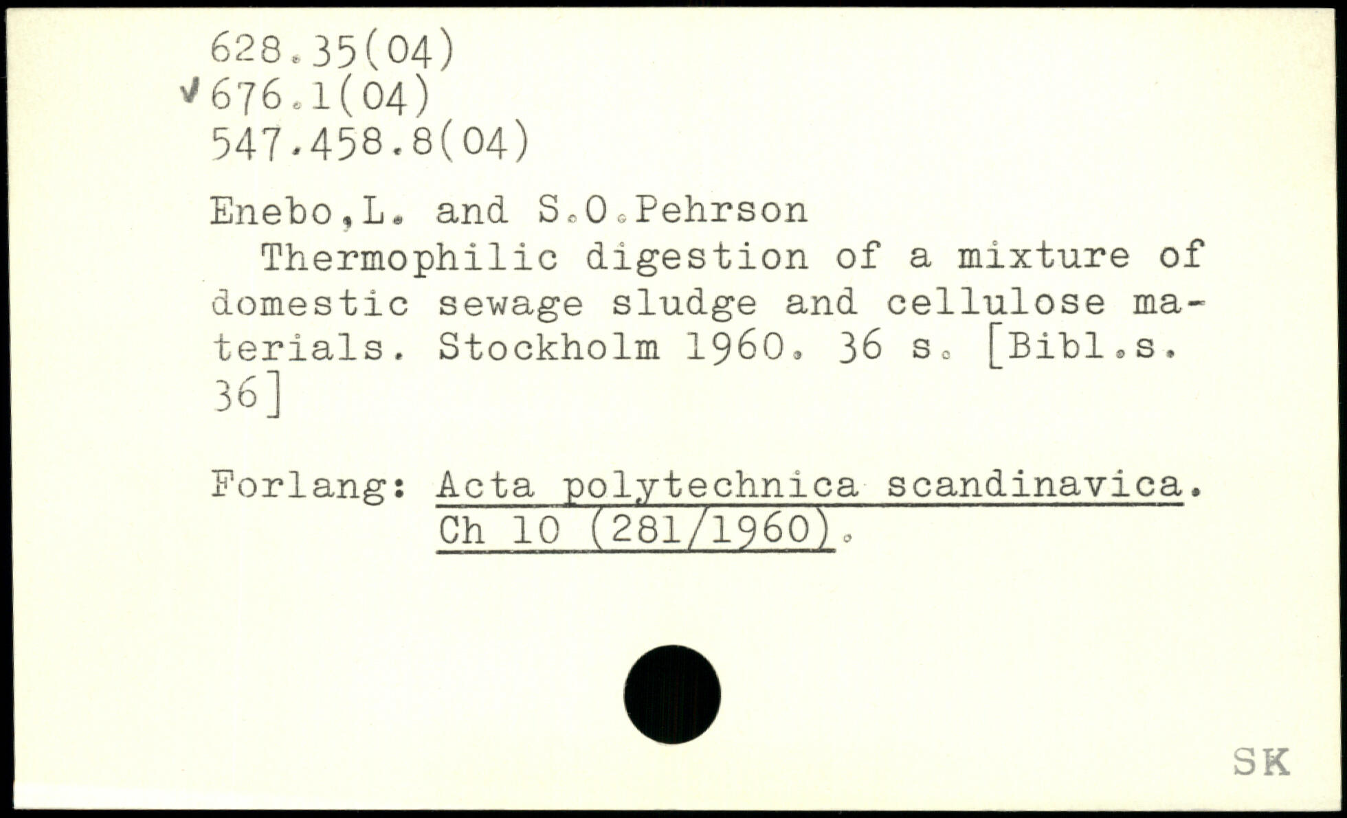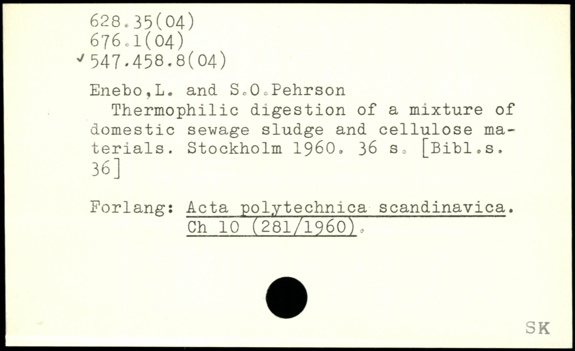 Enebo,L. and S,0Pehrson Thermophilic digestion of a mixture of domestic sewage sludge and cellulose materials.