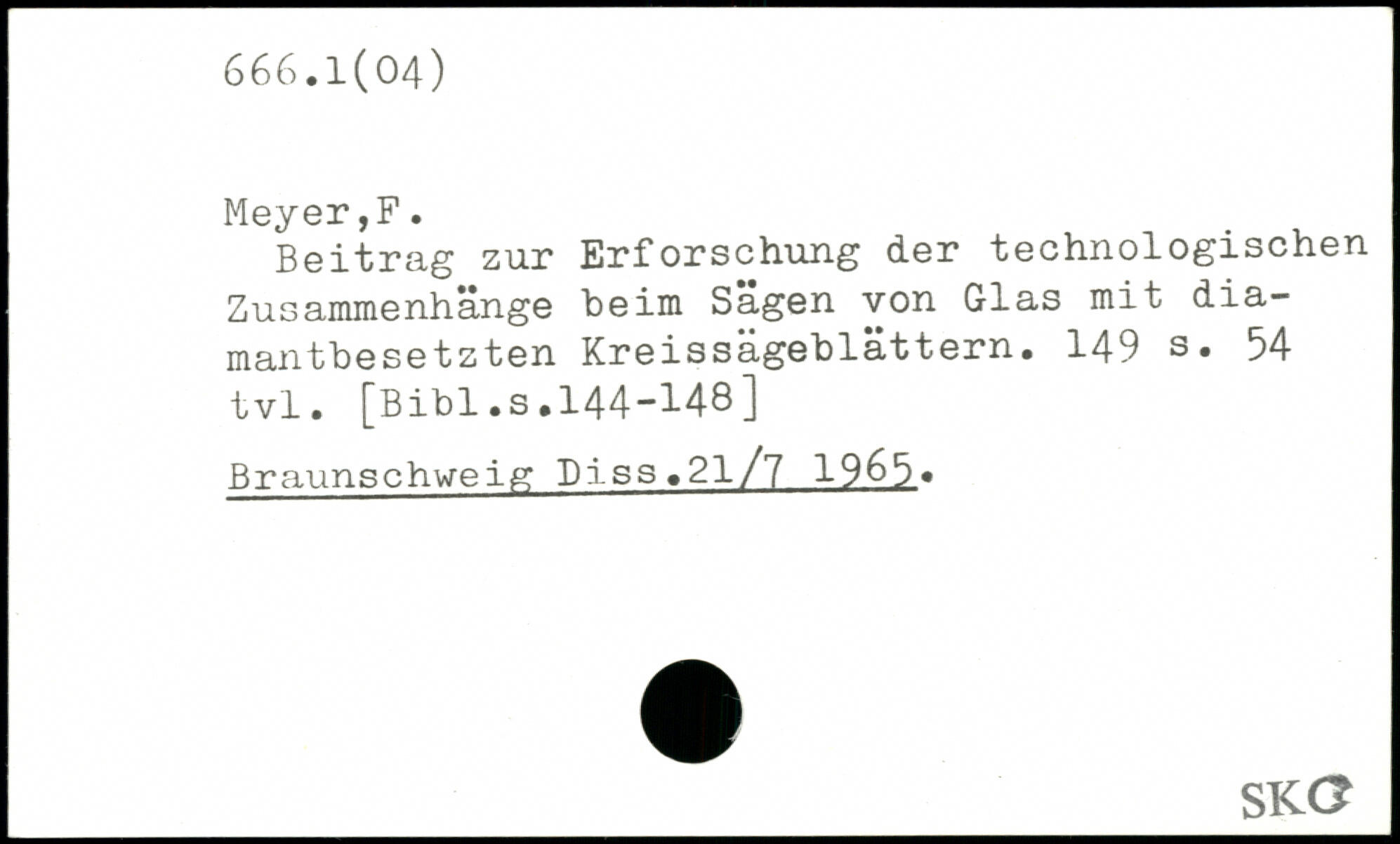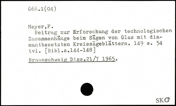 Beitrag zur Erforschung der technologischen Zusammenhänge beim Sägen von Glas mit diamantbesetzten Kreissägeblättern.