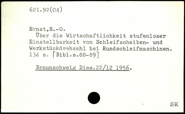 Uber die Wirtschaftlichkeit stufenloser Einsteilbarkeit von Schleifscheiben- und Werkstückdrehzahl bei Bundschleifmaschinen.