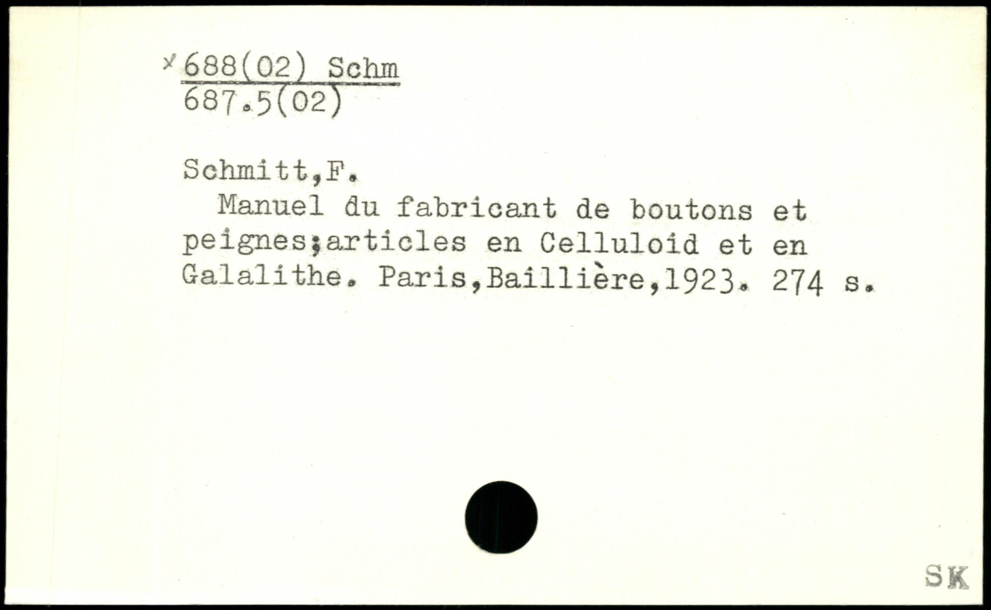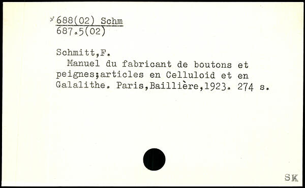 Manuel du fabricant de boutons et peignes}articles en Celluloid et en Galalithe. Paris,Ba1111ère,1923.