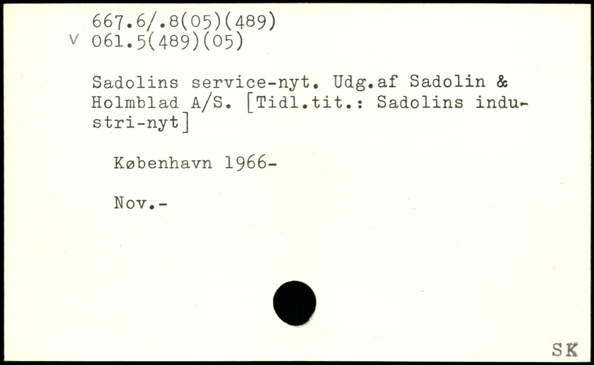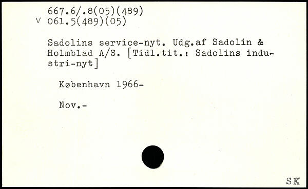 Sadolins service-nyt. Udg.af Sadolin & Holmblad å/S. [Tidl.tit.: Sadolins industri-nyt ]