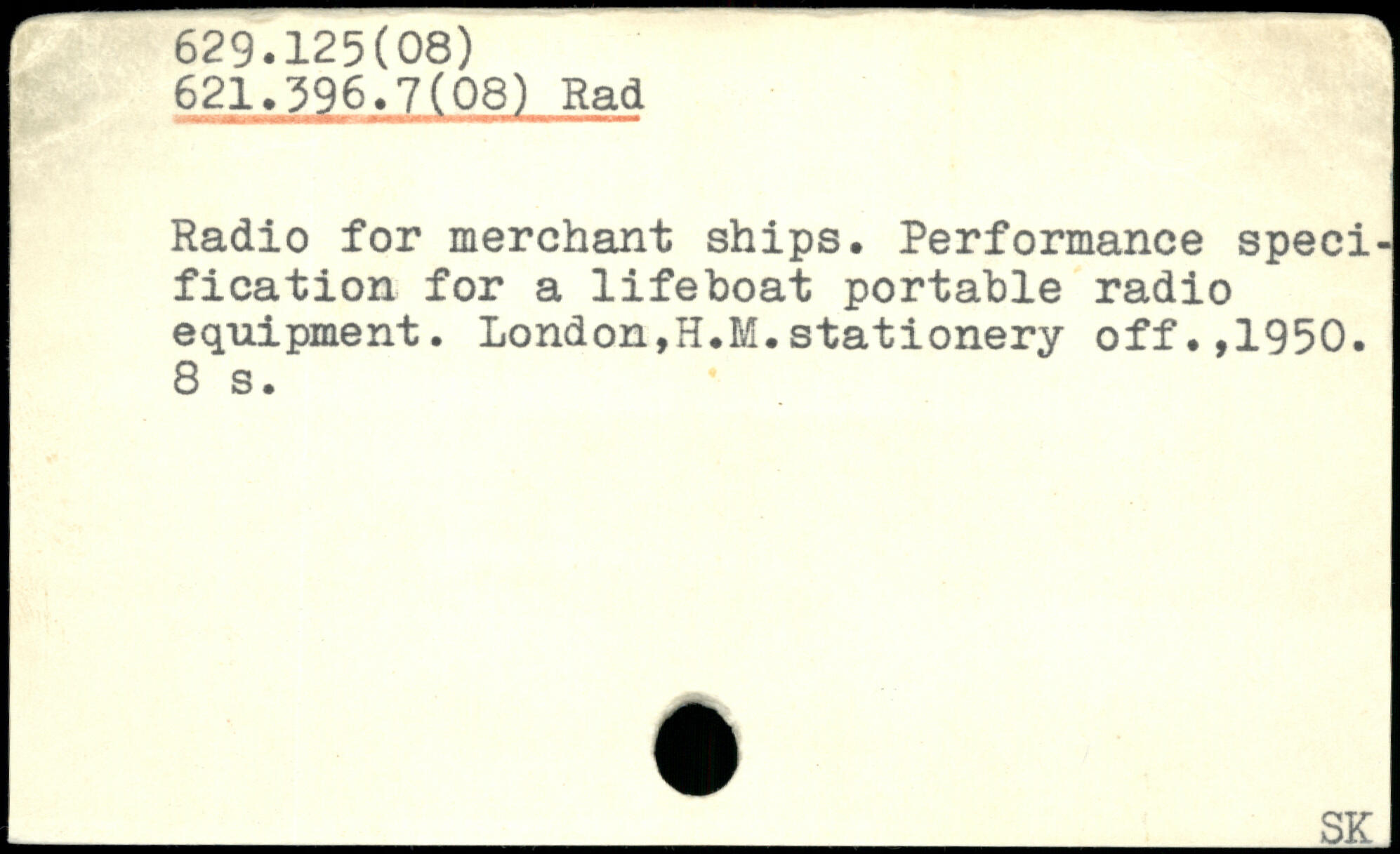Radio for merchant ships. Performance specification for a lifeboat portable radio equipment, London,H.M.stationery off.,1950.