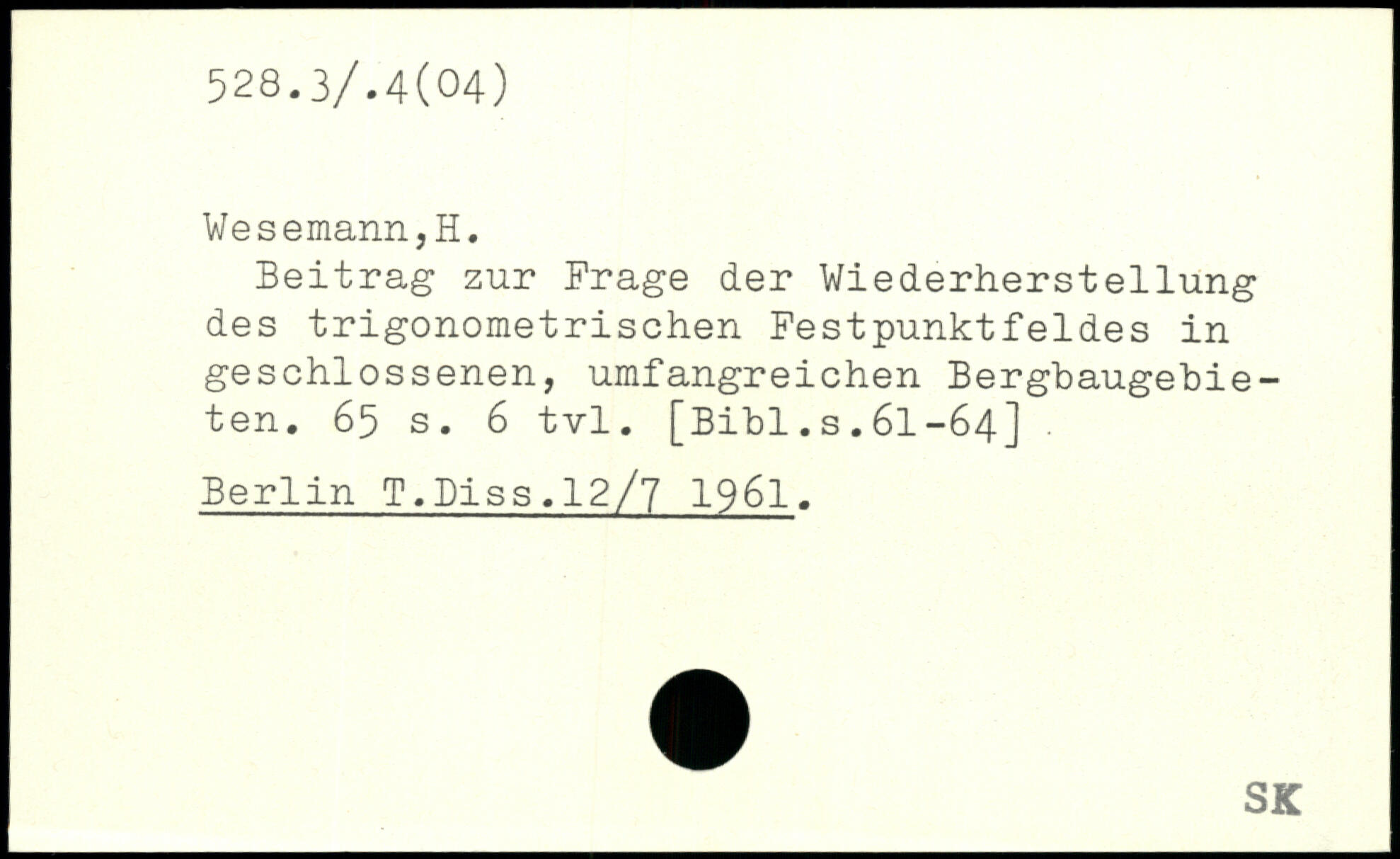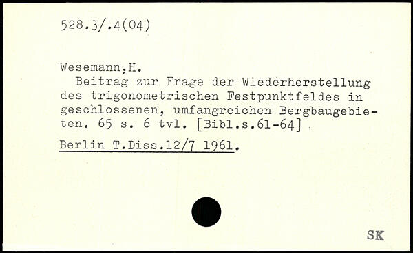 Beitrag zur Frage der Wiederherstellung des trigonometrischen Festpunktfeldes in geschlossenen, umfangreichen Bergbaugebieten.