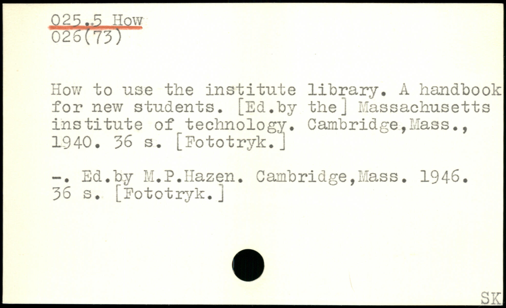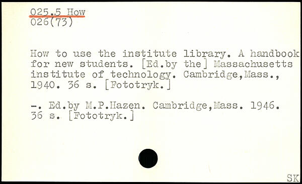 How to use the institute library, A handbook for new students. [Ed.by the] Massachusetts institute of^technology.