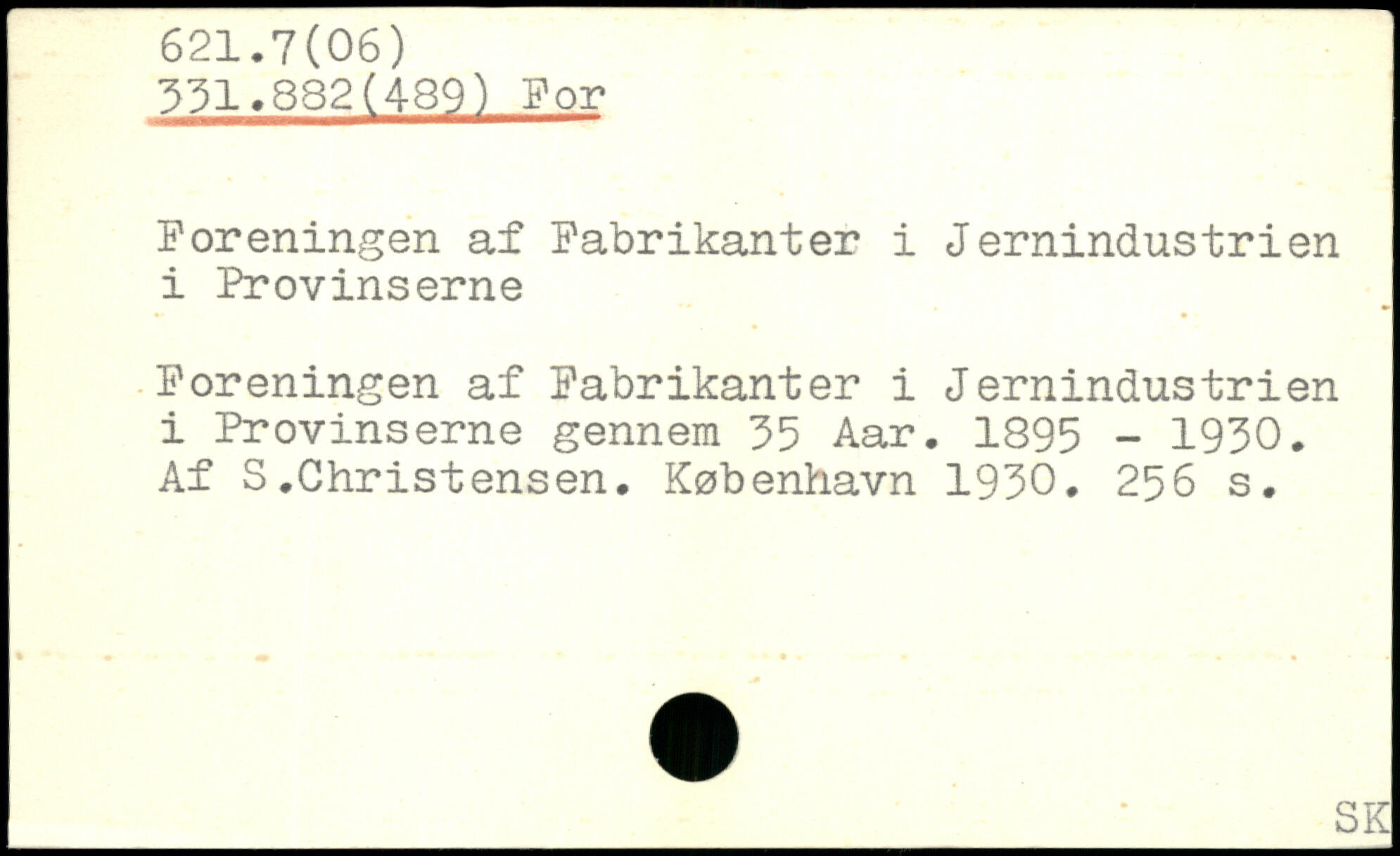 Foreningen af Fabrikanter i Jernindustrien i Provinserne Foreningen af Fabrikanter i Jernindustrien i Provinserne gennem 35 Aar. 1895 - 1930. Af S.Christensen.