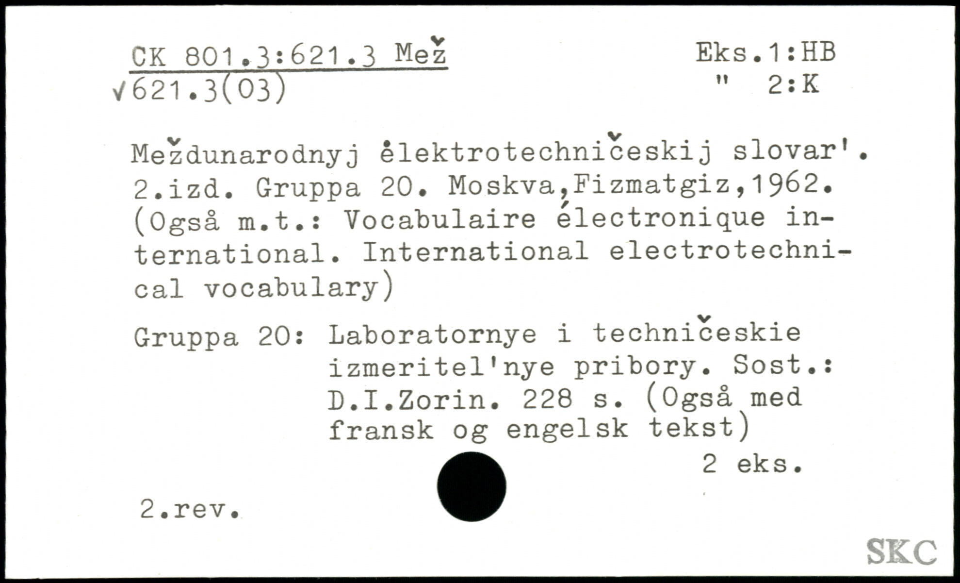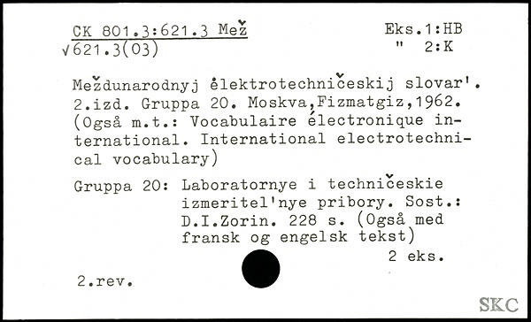Mezdunarodnyj êlektrotechniceskij slovar’. 2.izd. Gruppa 20.