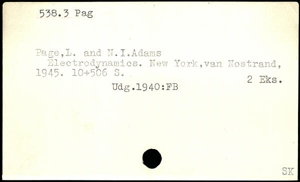 Page,!, and IT. I.Adams Electrodynamics. New York,van Nostrand, 1945.