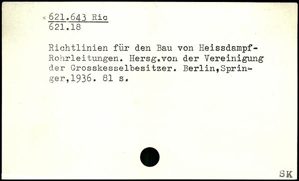 Richtlinien für den Bau von Heissdampf-Rohrleitungen. Hersg.von der Vereinigung der Grosskesselbesitzer. Berlin,Sprin.-ger,1936.