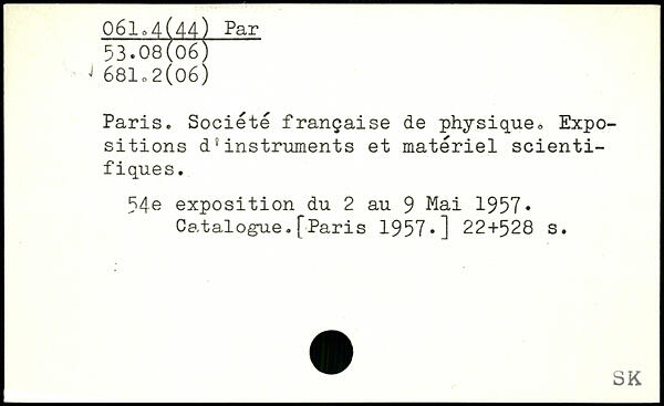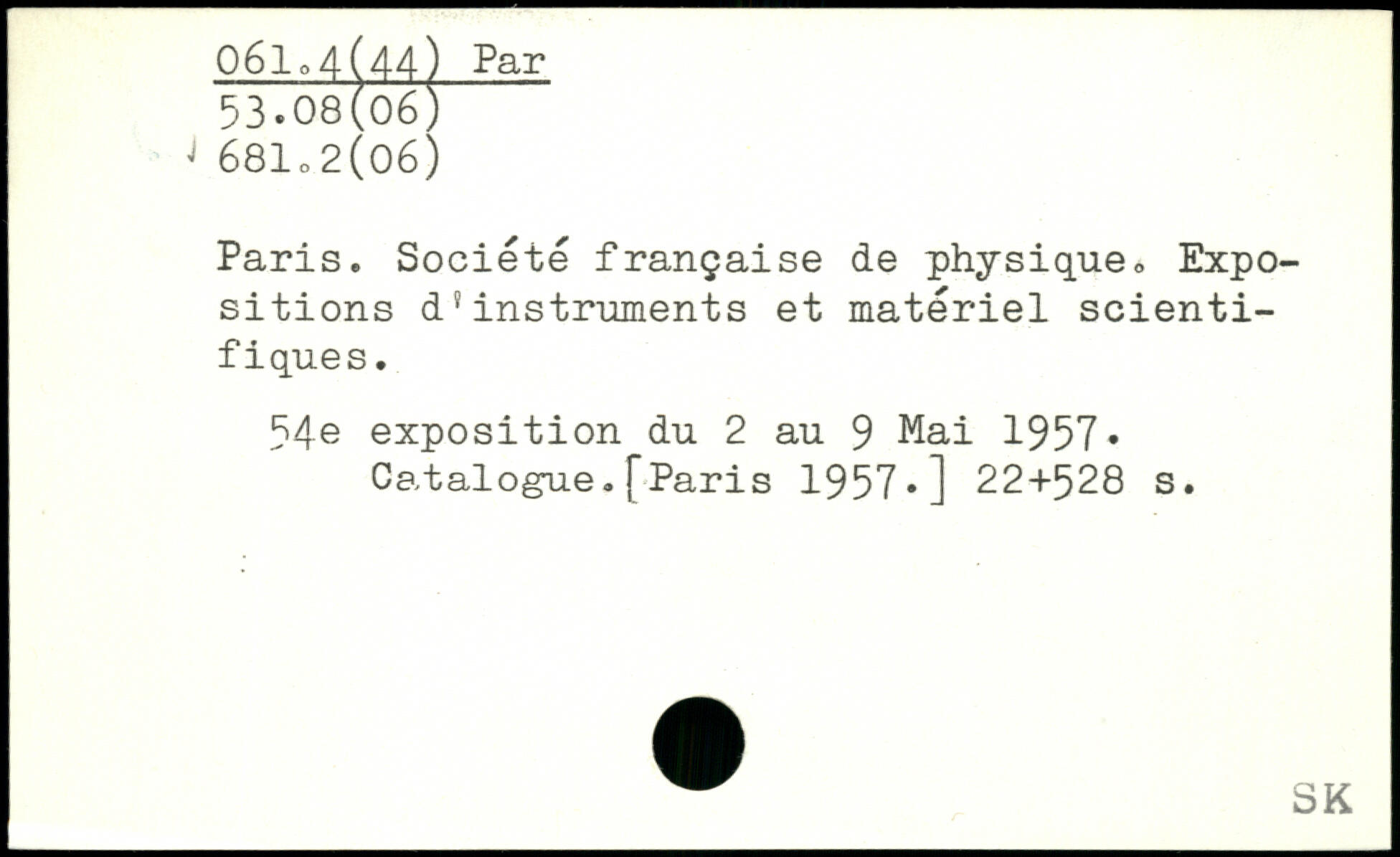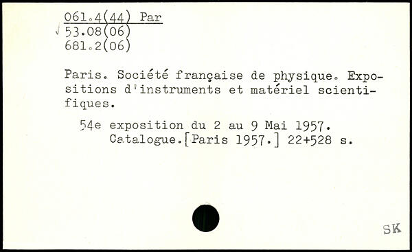Paris. Société française de physique, Expositions d'instruments et matériel scientifiques. 54© exposition du 2 au 9 Mai 1957. Catalogue.