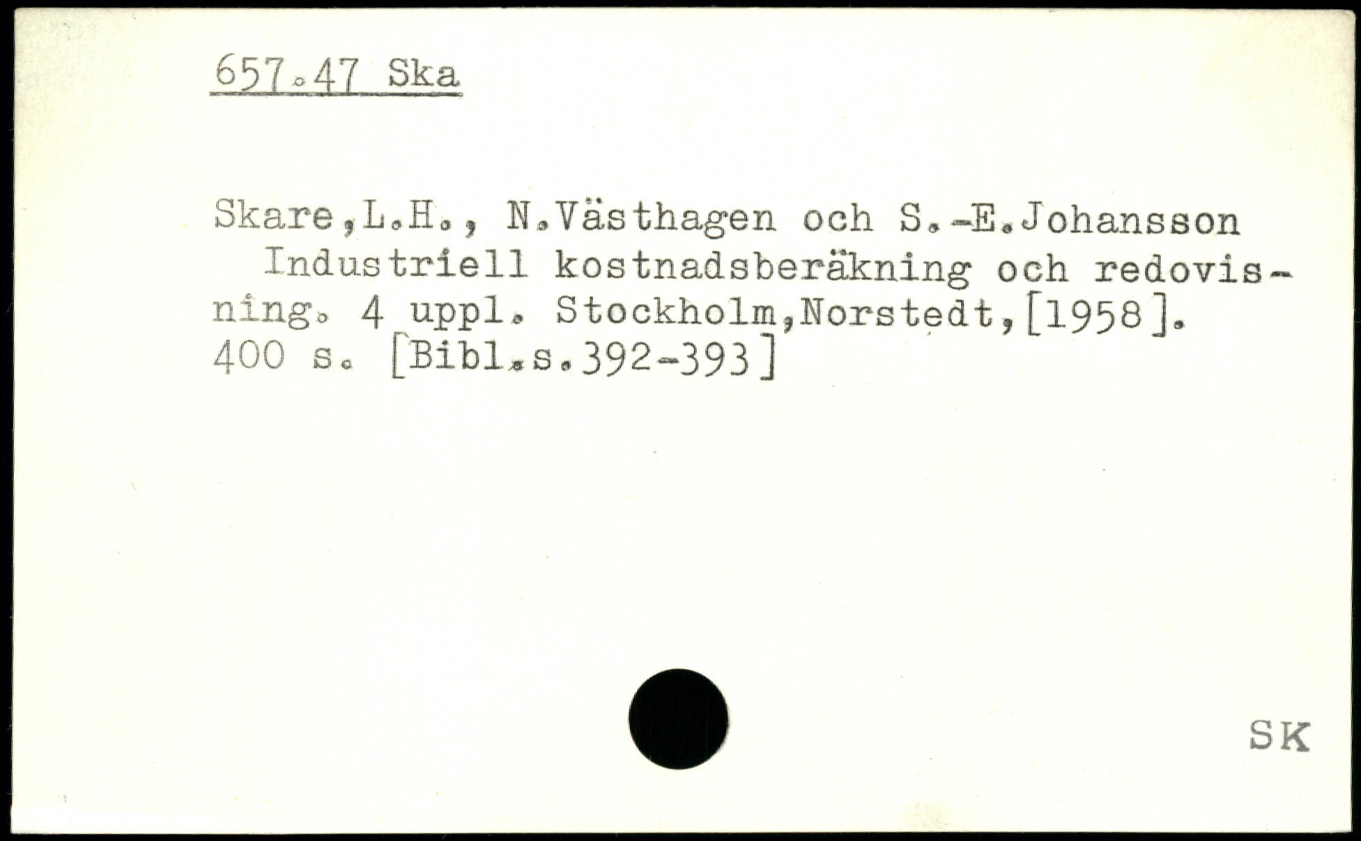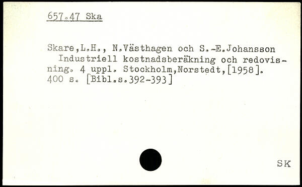 Skare,L,Ho, N,Västhagen och S,-E.Johansson Industriell kostnadsberäkning och redovisningo 4 upp