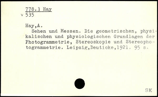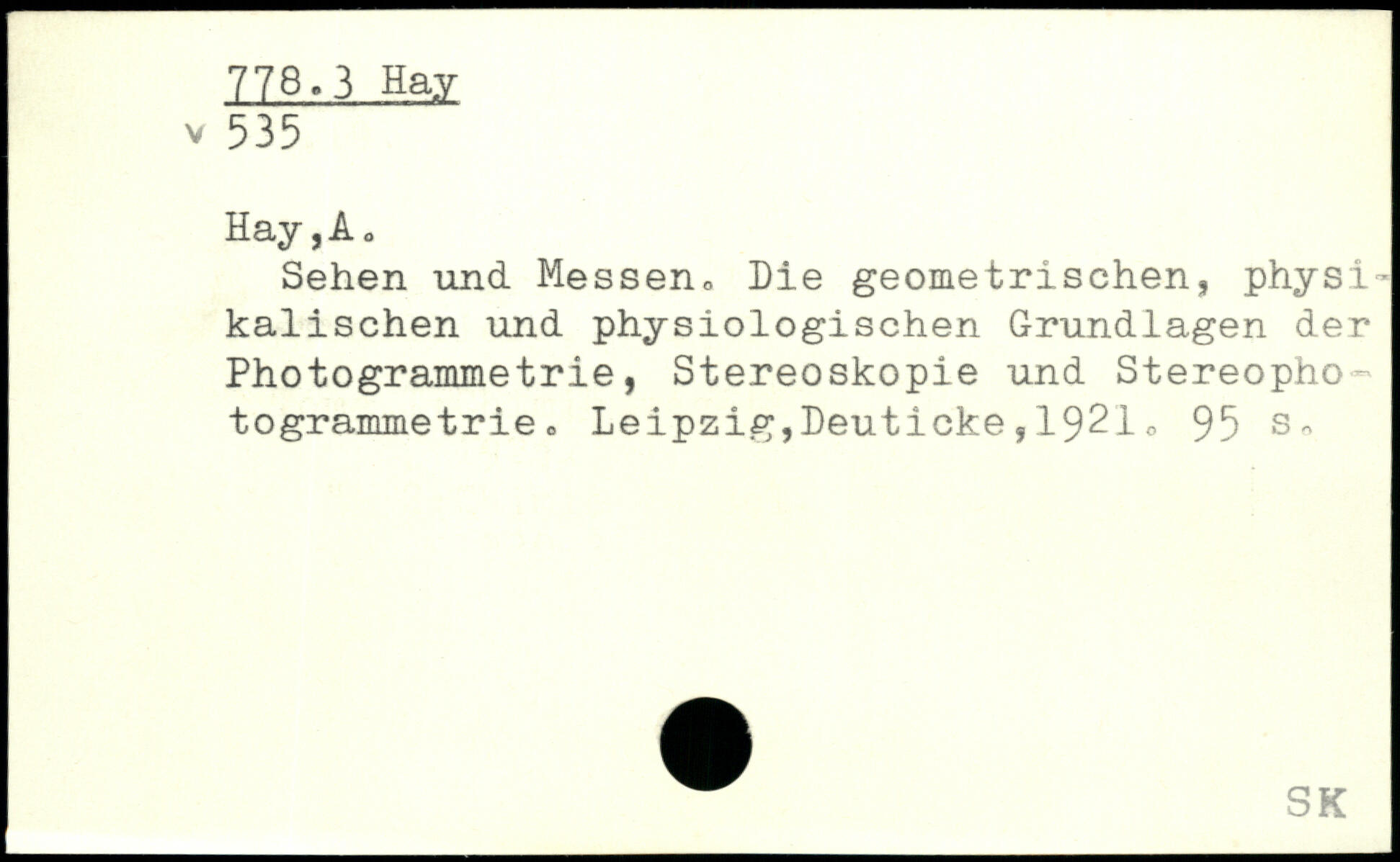 Sehen und Messen, Die geometrischen, physikalischen und physiologischen Grundlagen der Photogrammetrie, Stereoskopie und Stereopho-togrammetrie.