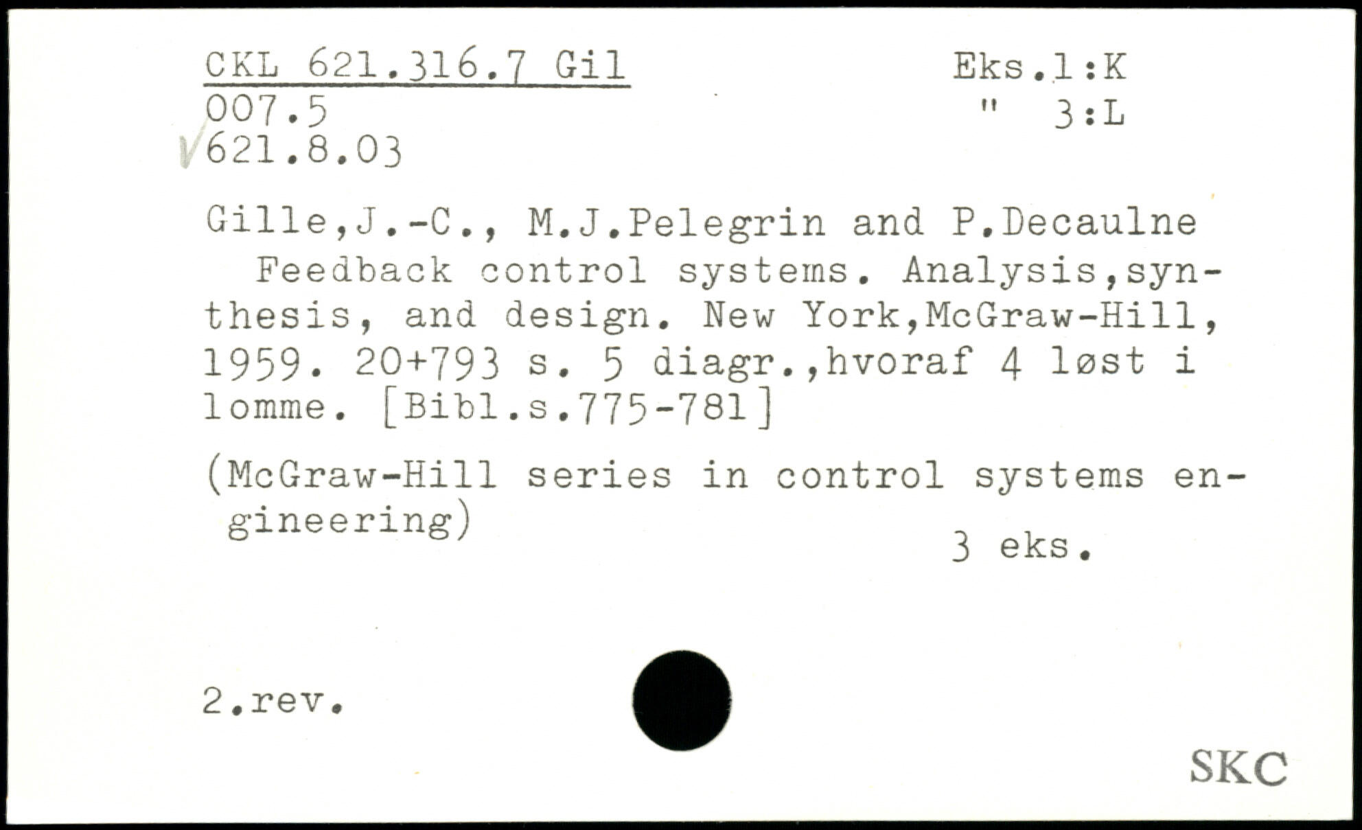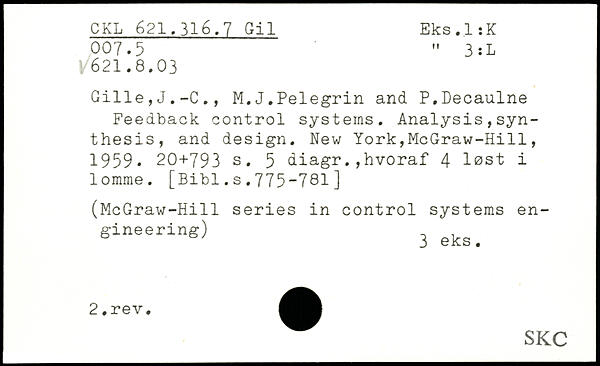 Giile,J.-C., M.J.Pelegrin and P.Lecaulne Feedback control systems. Analysis,synthesis, and design.