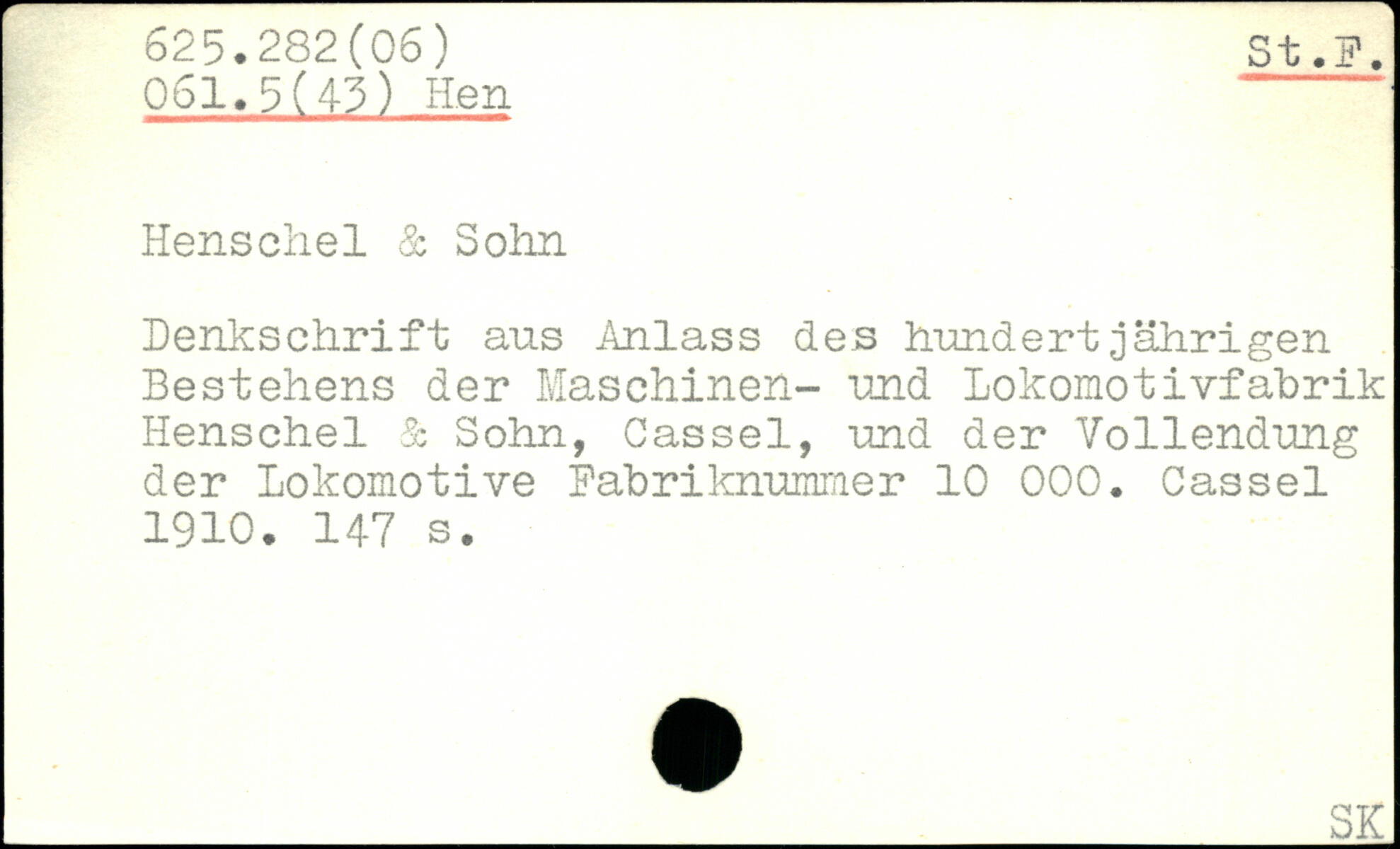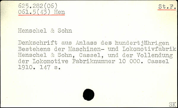Denkschrift aus Anlass de s hundert jährigen Bestehens der Maschinen- und Lokomotivfabrik Iienschel & Sohn, Cassel, und der Vollendung der Lokomotive Babriknummer 10 000. Cassel 1910.