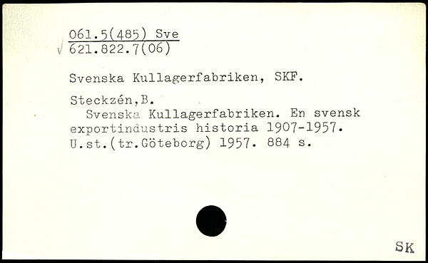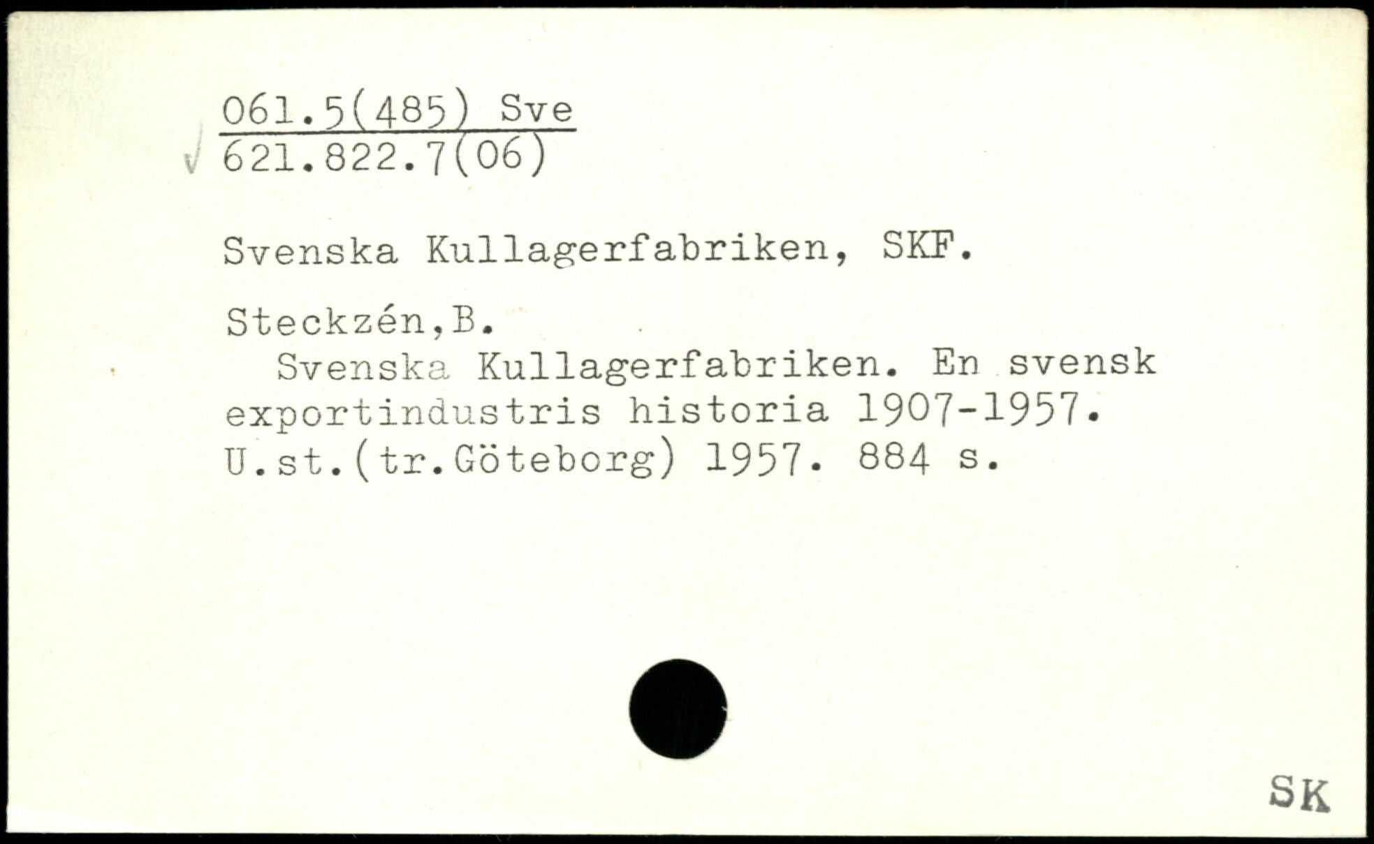 Steekzén,B. Svenska Kullagerfabriken. En svensk exportindustris historia 1907-1957-U.st.(tr.Göteborg) 1957-