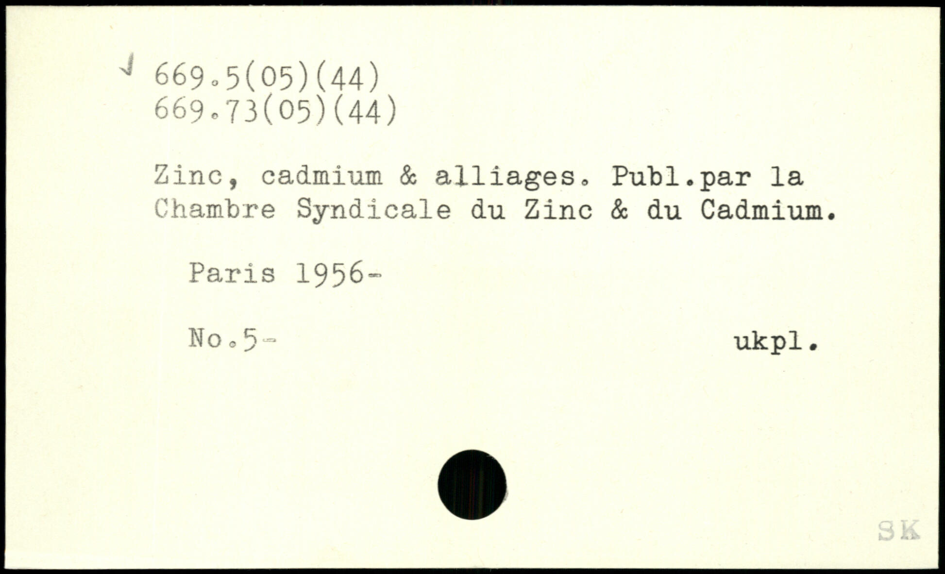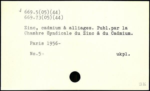 Zinc, cadmium & alliages. Publ.par la Chambre Syndicale du Zinc & du Cadmium.
