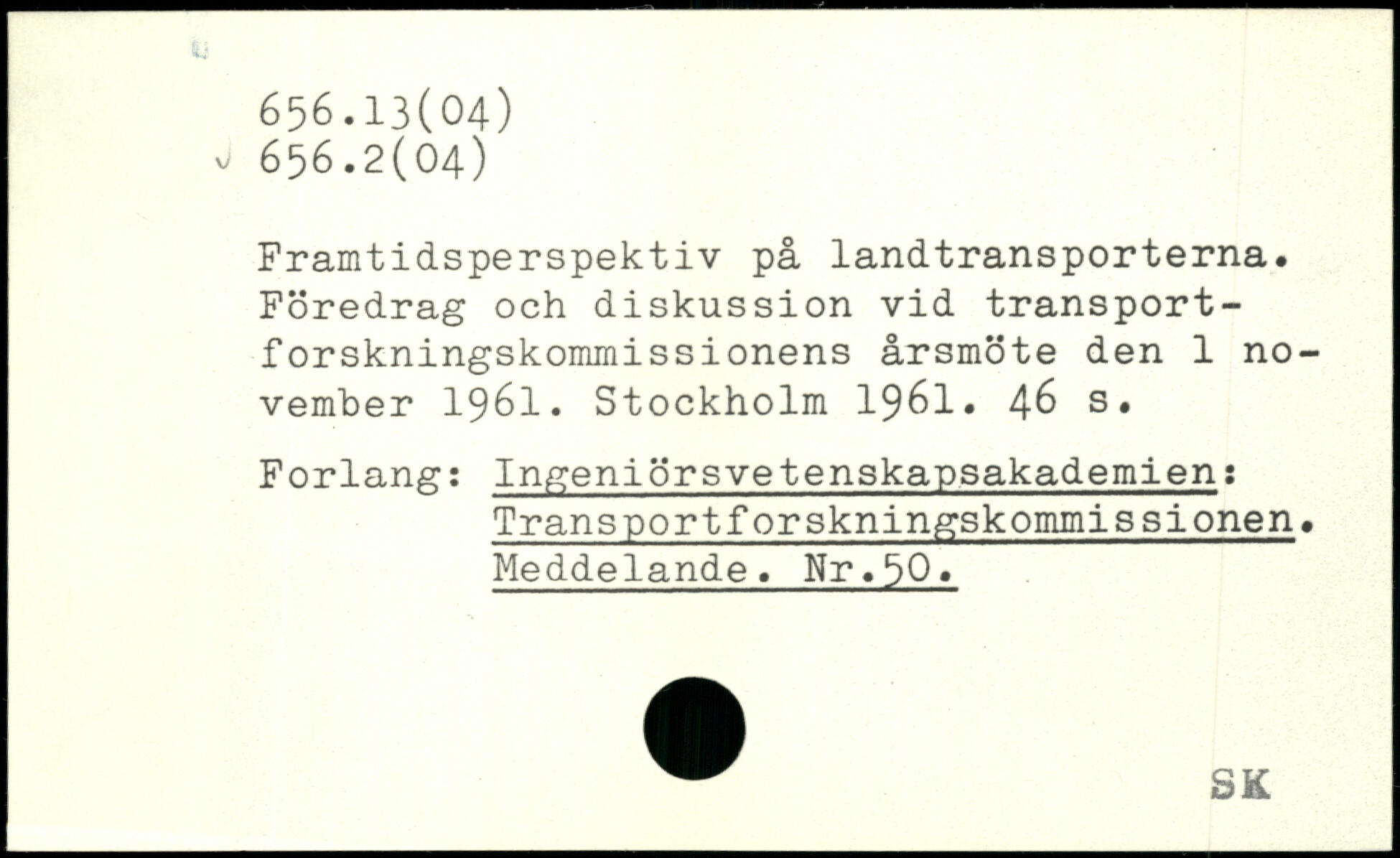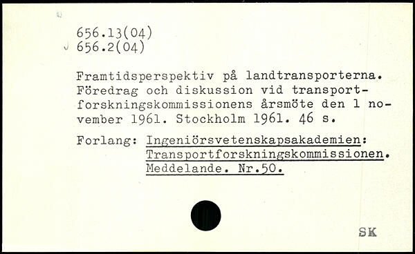 Framtidsperspektiv på landtransporterna. Föredrag och diskussion vid transport-forskningskommissionens årsmöte den 1 november 1961.